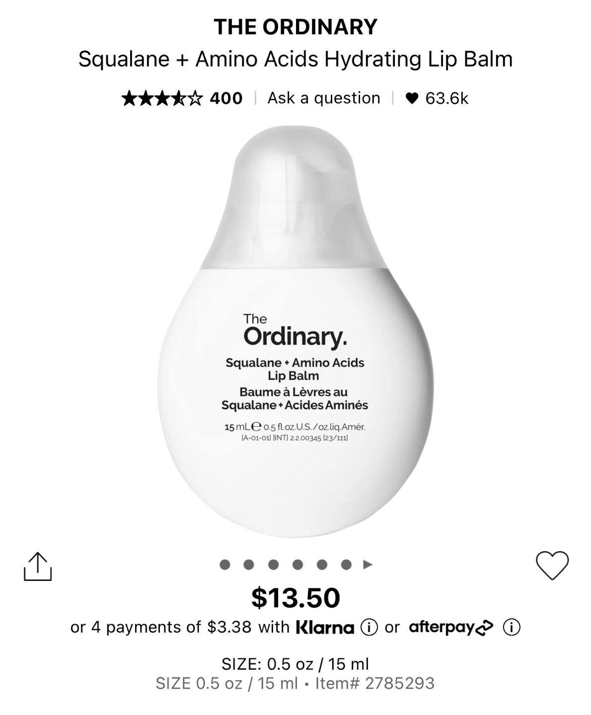 The Ordinary Squalane + Amino Acids Hydrating Lip Balm