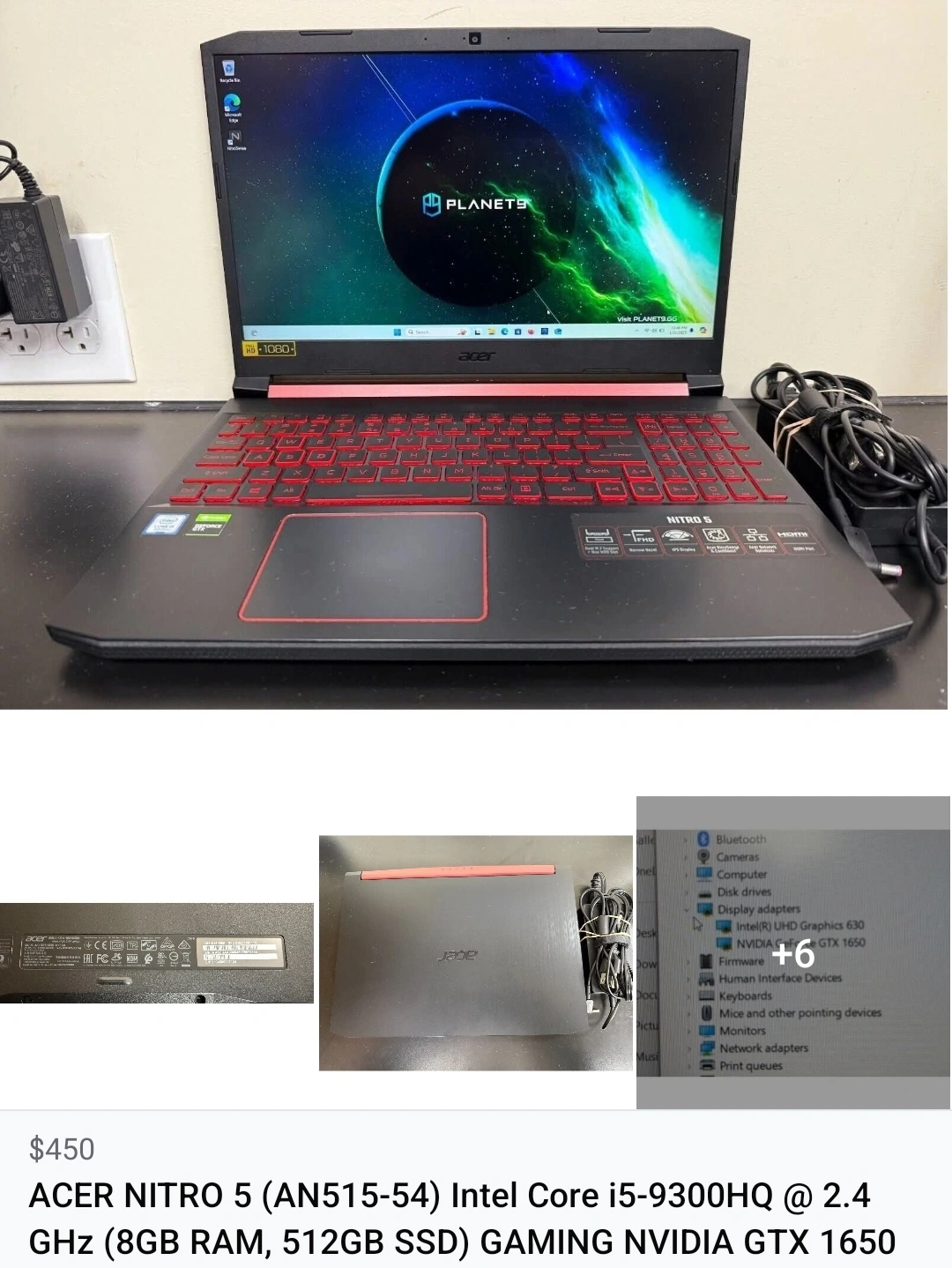 ACER NITRO 5, Core i5-9TH (8GB RAM, 512GB SSD) GTX 1650