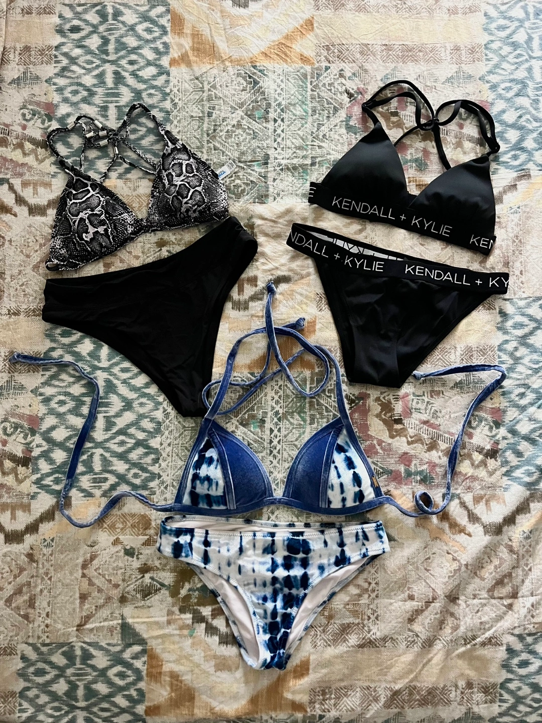 Top and bottom of all Bikinis are a size XS. All bikinis are in “like new” condition