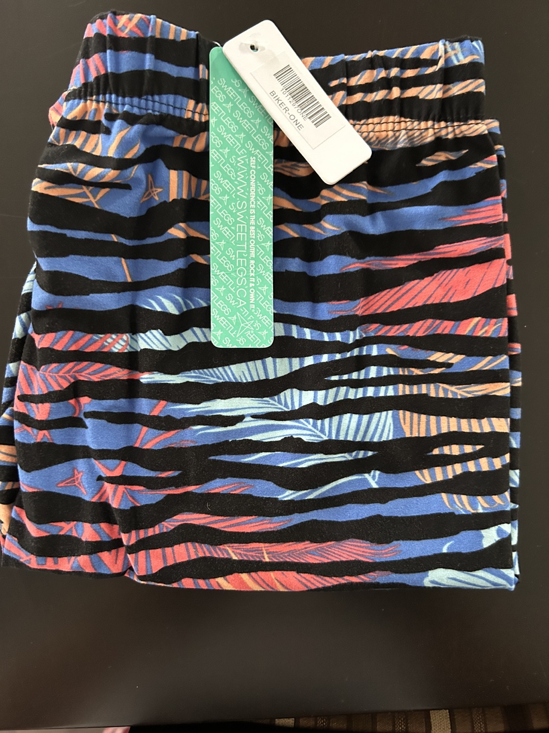 Brand new SweetLegs biker shorts. Features a vibrant tropical zebra print. Great for lounging or working out.