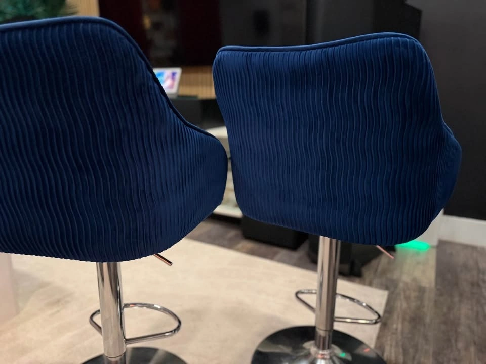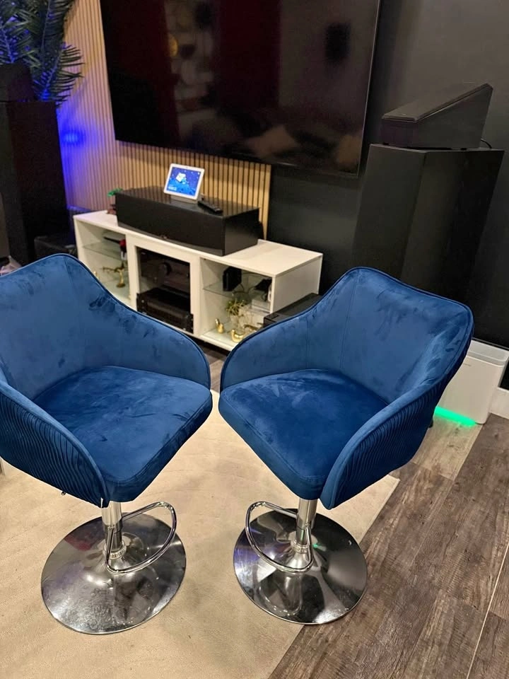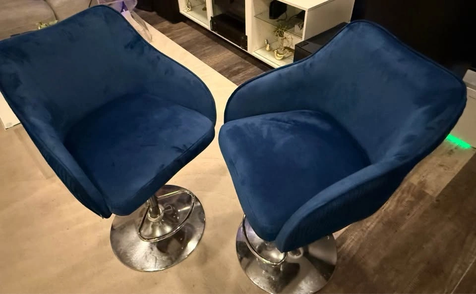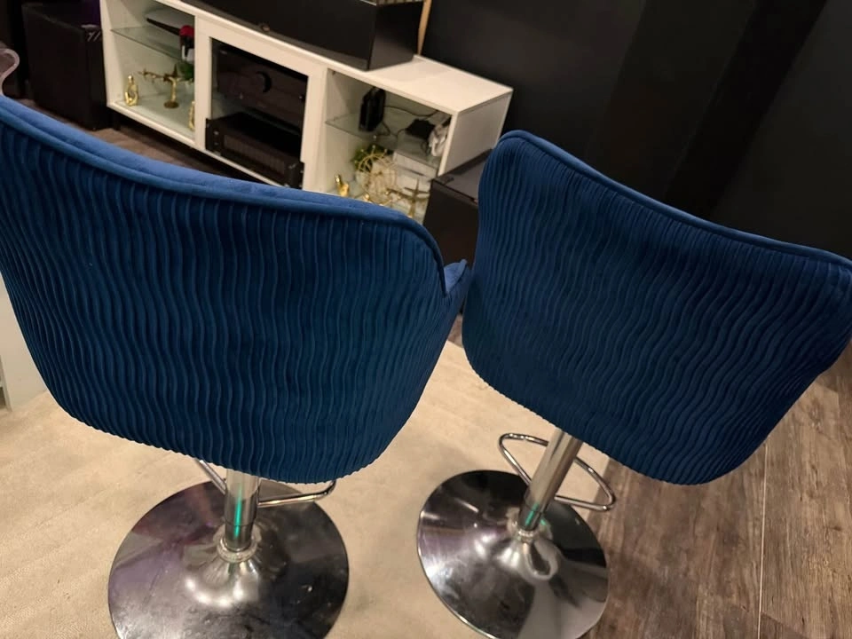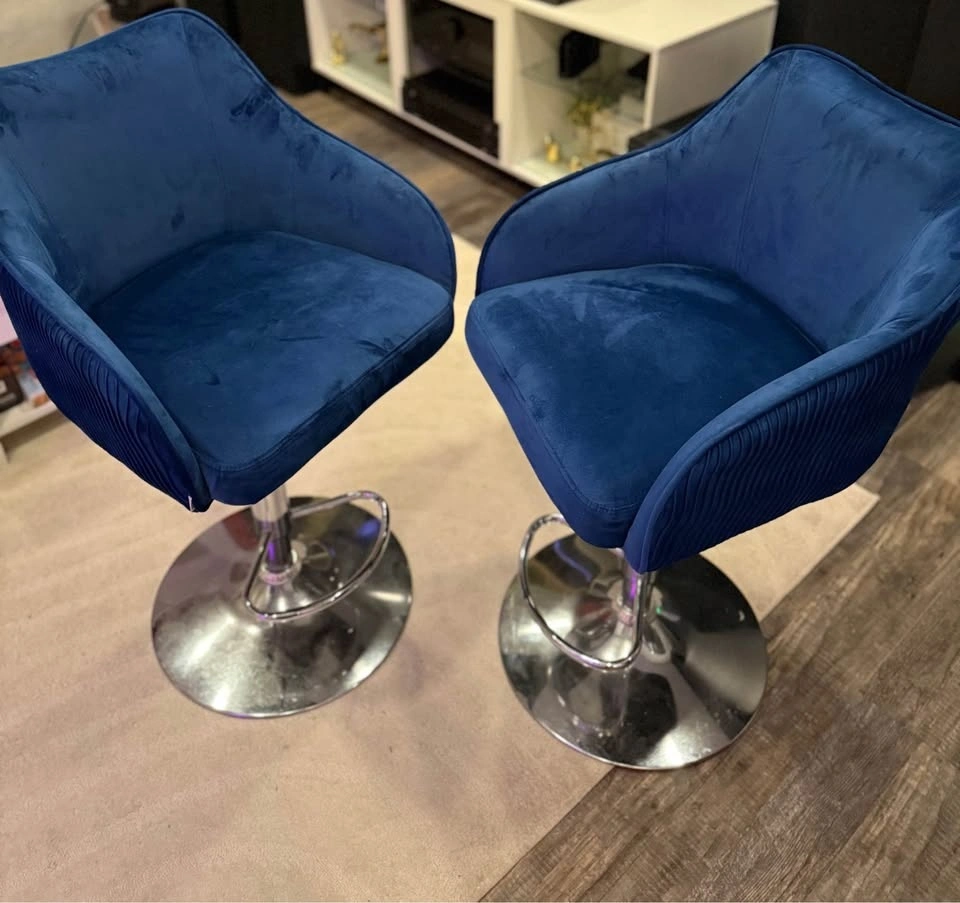 Great condition, only had them for 3 months! They are a velvet material and very gorgeous. My loss is your gain to pick them up for a bargain price! Also selling a high-top glass dining table in mint condition.
