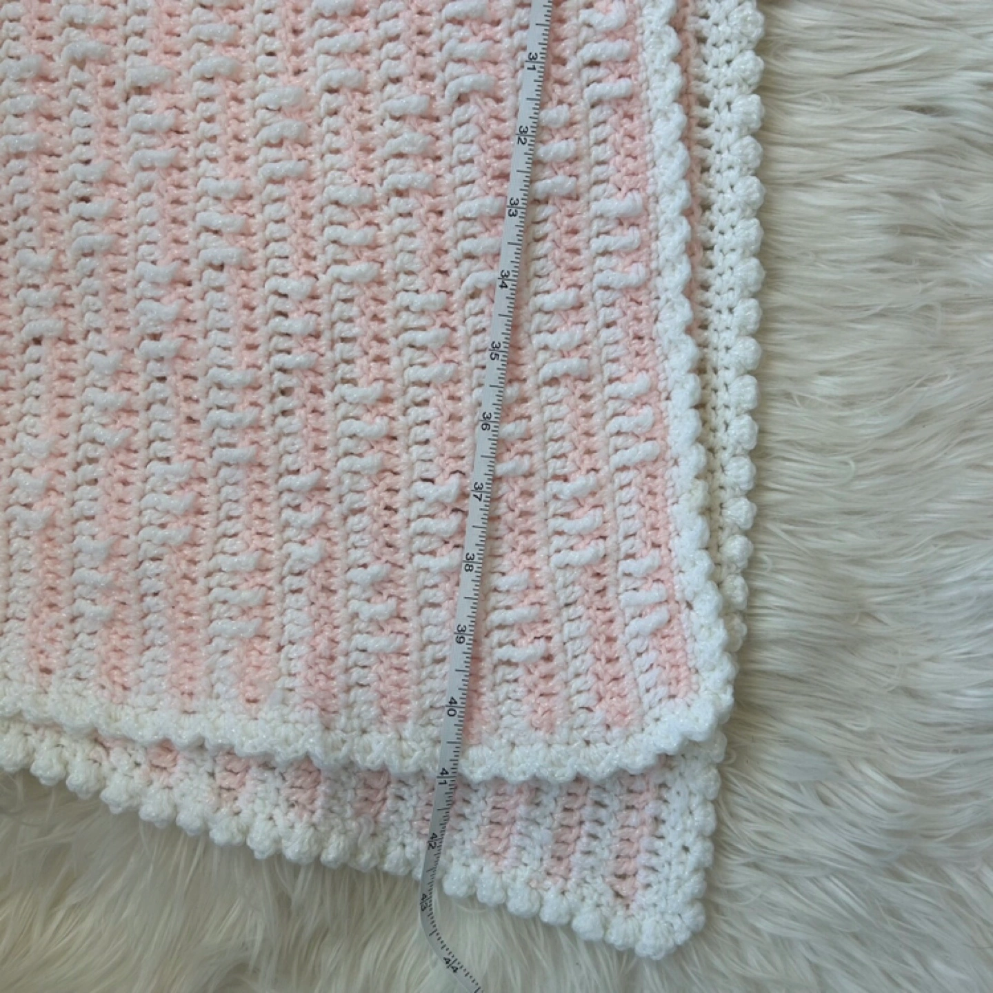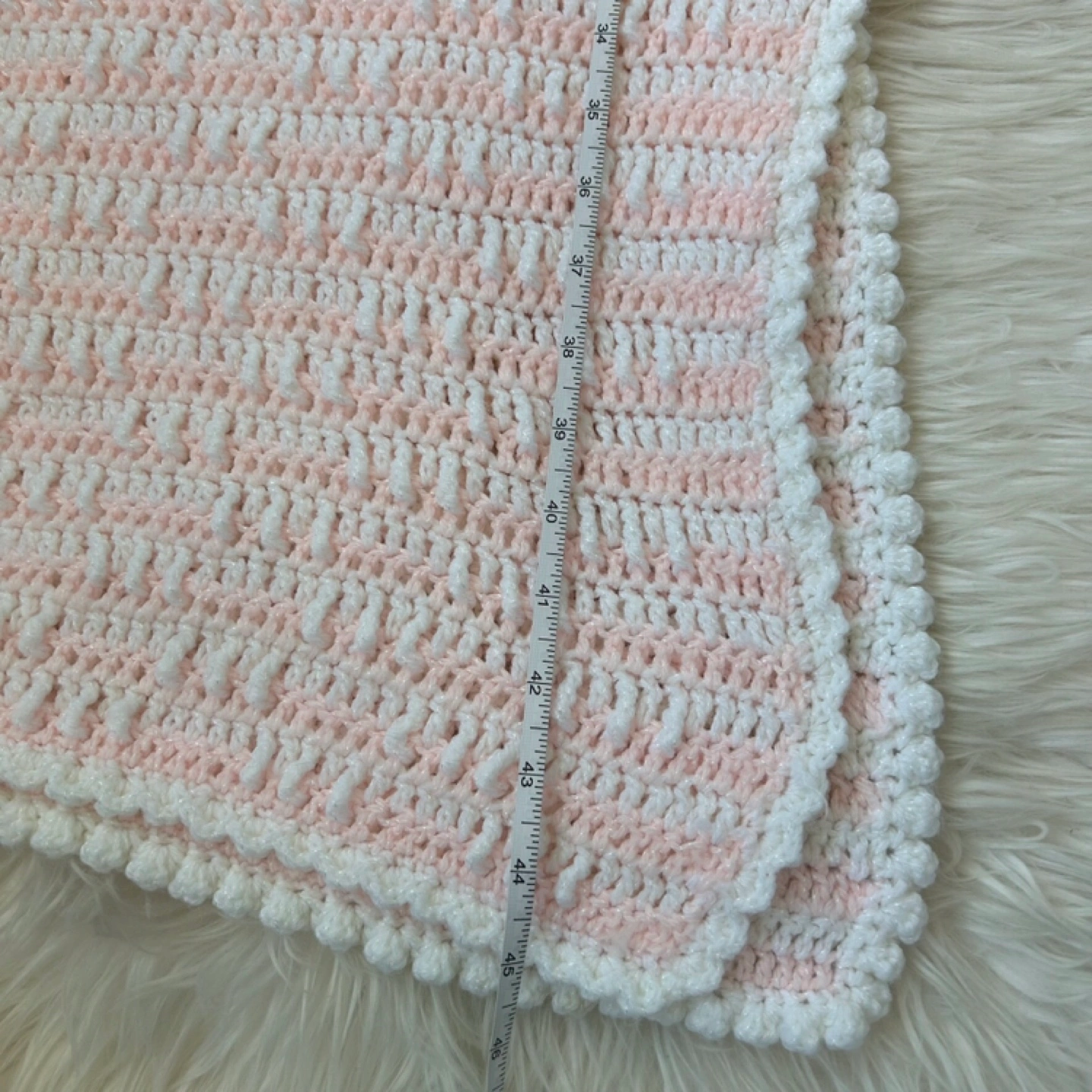 Vintage 1982 Cozy Pink and White Handmade Knit Baby Blanket