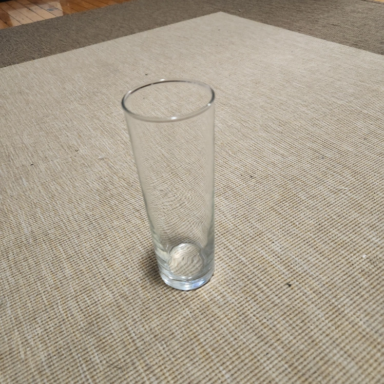Tall cylindrical glass vase. Perfect for flowers or home decor. Approximately 8 inches tall and 3 inches in diameter.