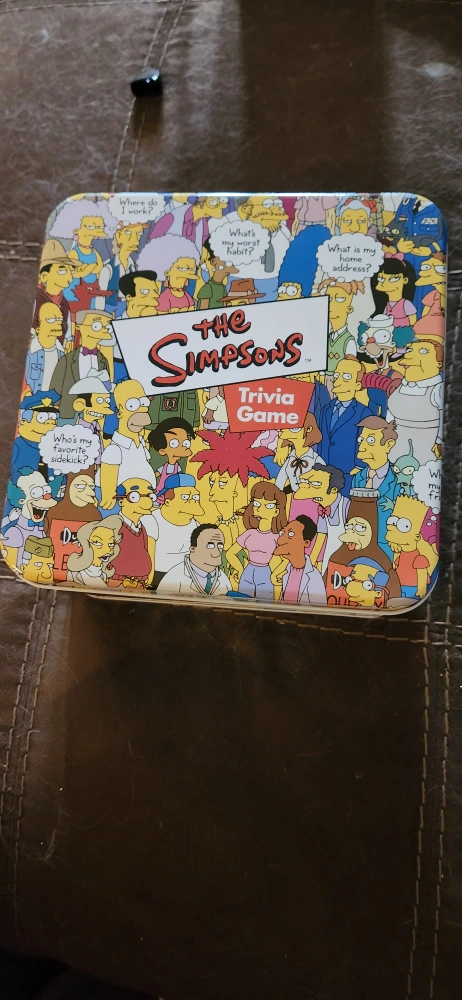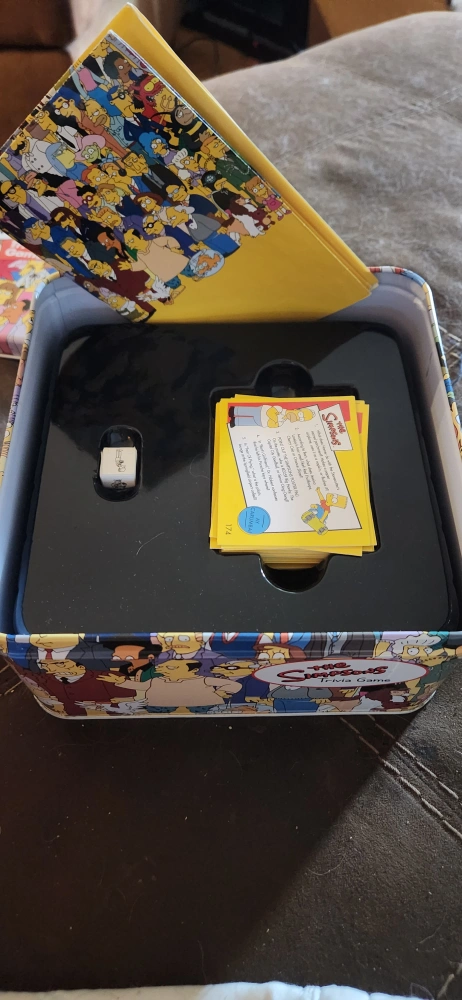 Fun trivia game featuring characters from the Simpsons. Complete with cards, die and poster. All in a collectible tin. no rule book.