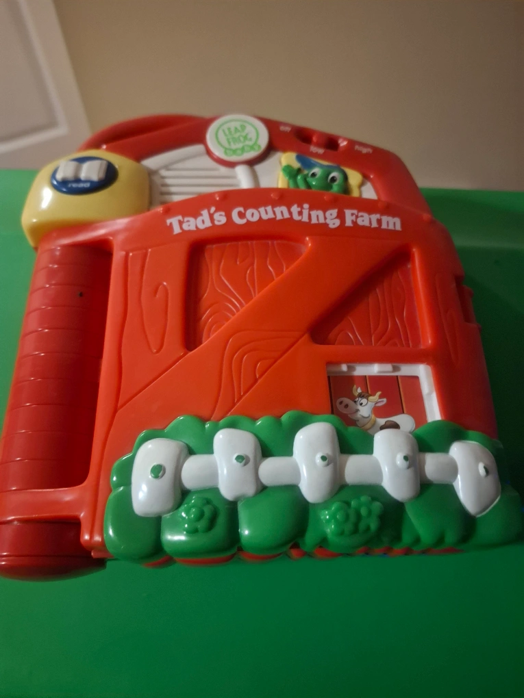 Interactive learning toy. Features farm animals and counting activities. Red barn design. Gently used.