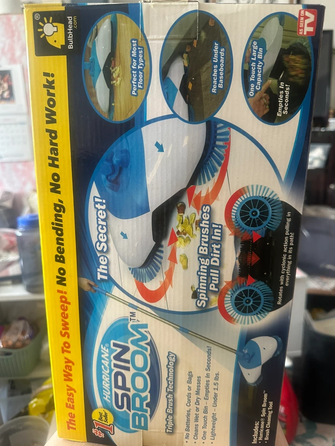 This Hurricane Spin Broom cleans wet or dry messes. It's lightweight at under 1.5 lbs and features a one-touch bin that empties in seconds. The triple brush technology pulls dirt in, and it reaches under baseboards.