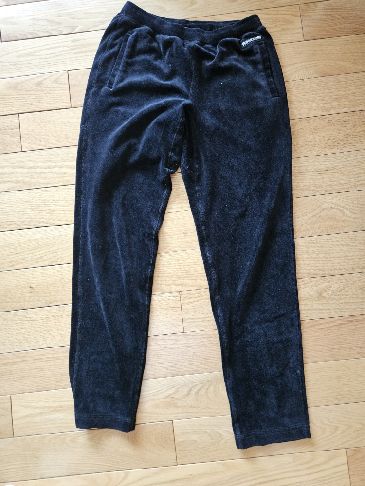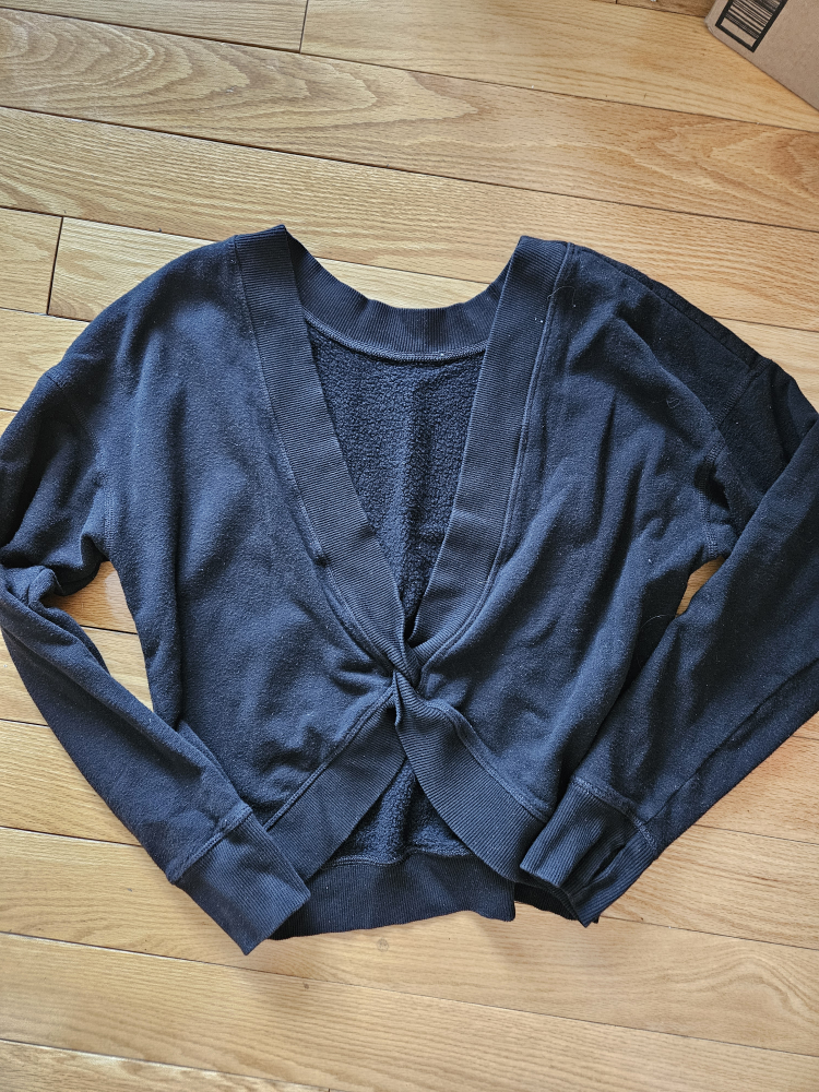 Bundle includes a black cropped twist-front sweater, a teal maxi dress, set of Disney pajamas, roots sweatpants, a couple sweaters and hoodies. Only the red bag in the last picture.
