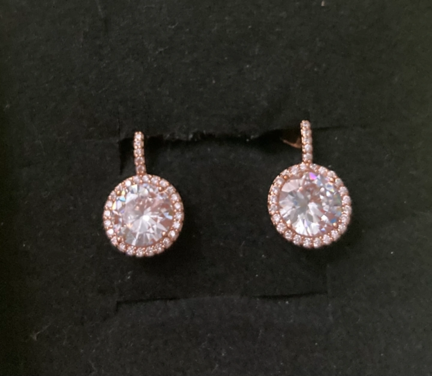 Designer Stunning rose gold earrings. Round big cubic crystal center stones. Dangle style. Elegant and sparkly for party. Brand-new Pick up and by cash 🥕
