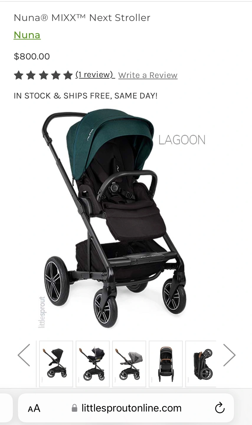 Nuna MIXX Next stroller. Lagoon colorway - Dark teal/green canopy/Black frame.