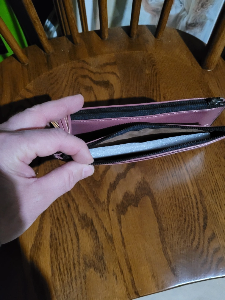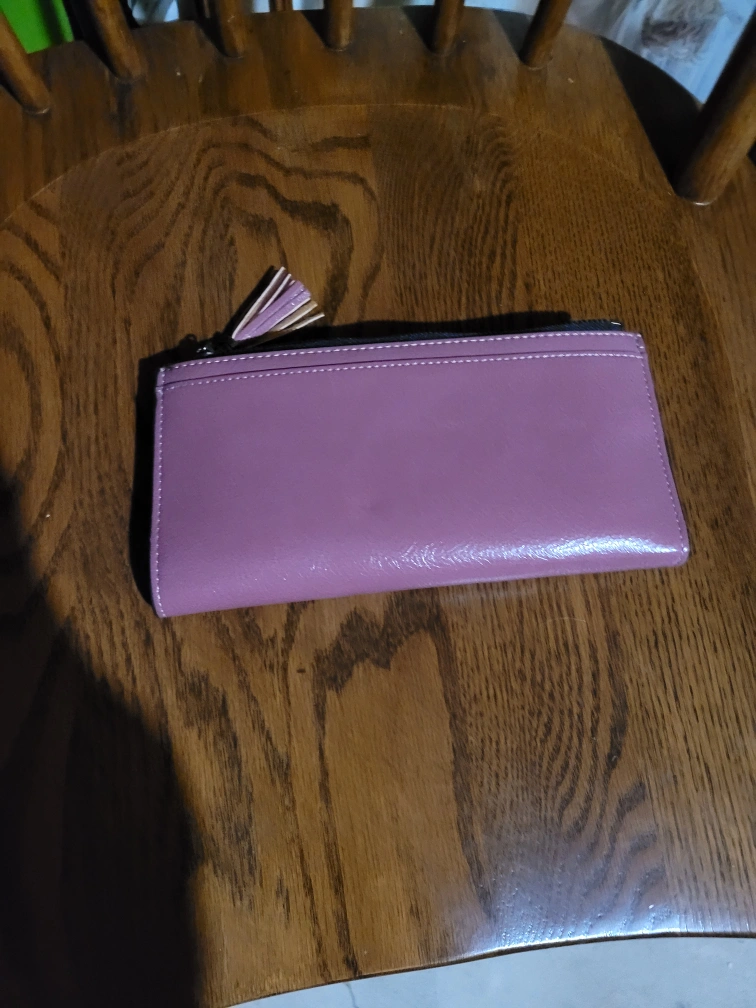 Lovely dusty rose coloured wallet. Features a zip closure and a cute tassel accent. Multiple card slots inside. Compact size, perfect for everyday use.
