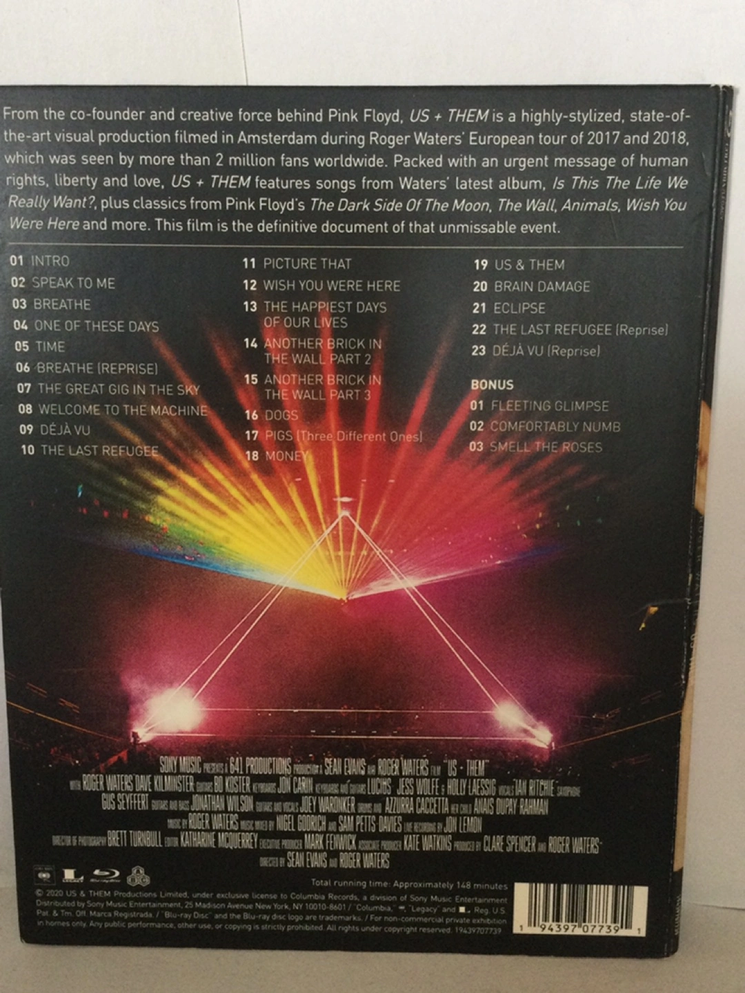 Roger Waters Us + Them concert film. Blu ray includes concert footage from European tour. Features many Pink Floyd classics.