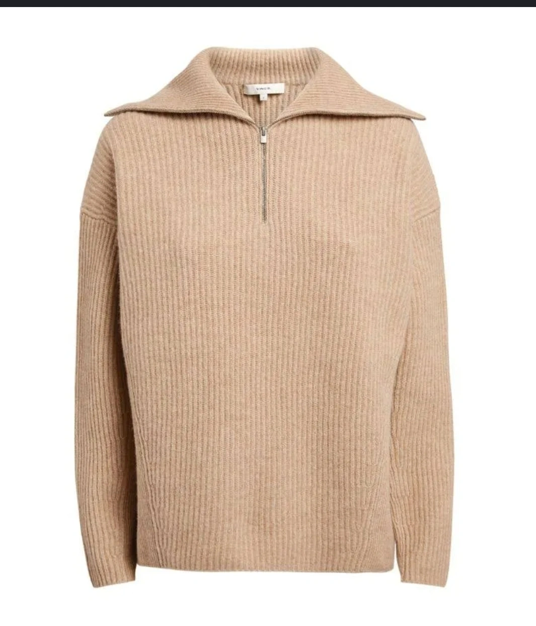 Beautiful beige ribbed wool-cashmere pullover. Half-zip closure. Relaxed fit. Size XS. Excellent condition.