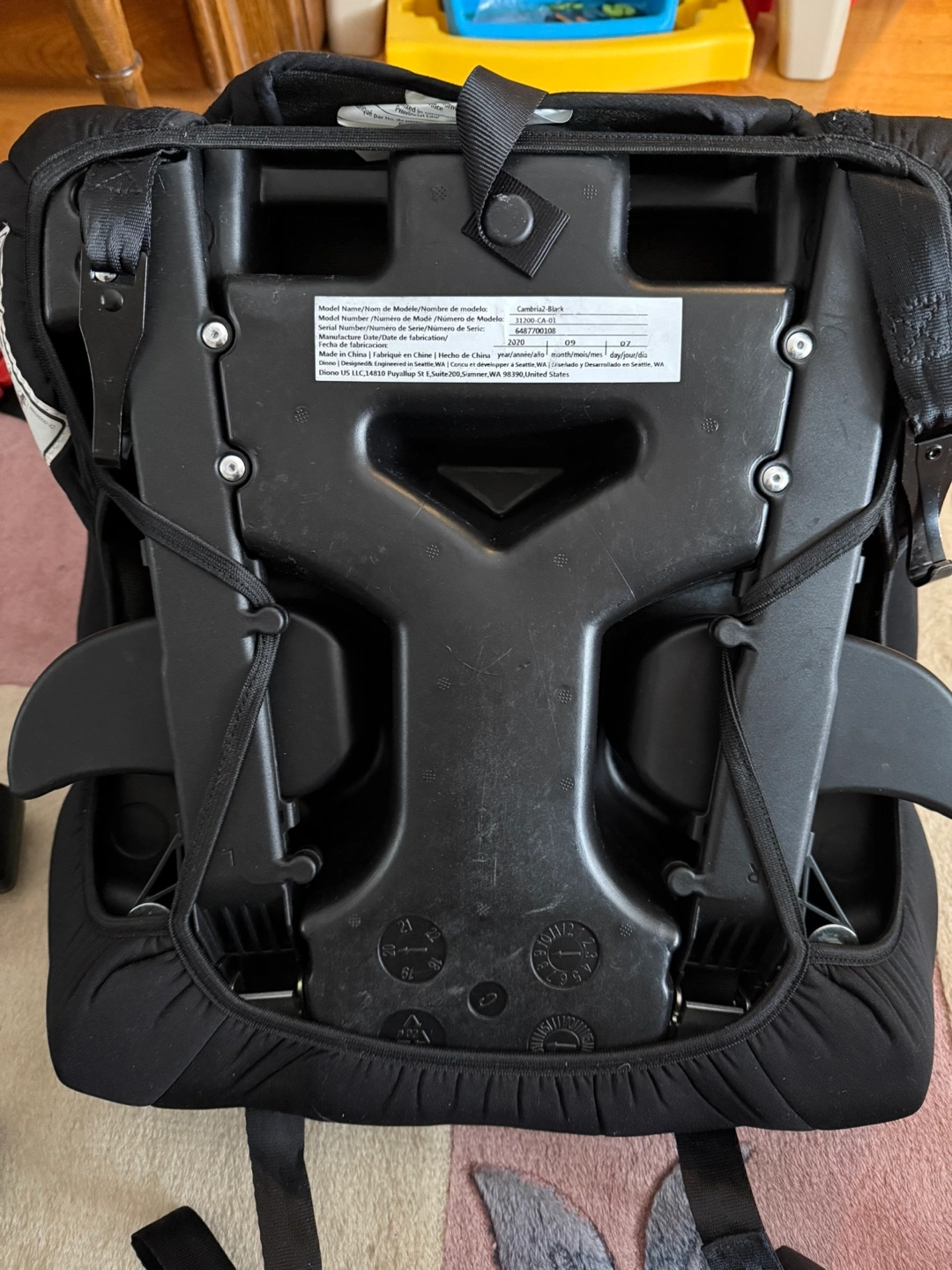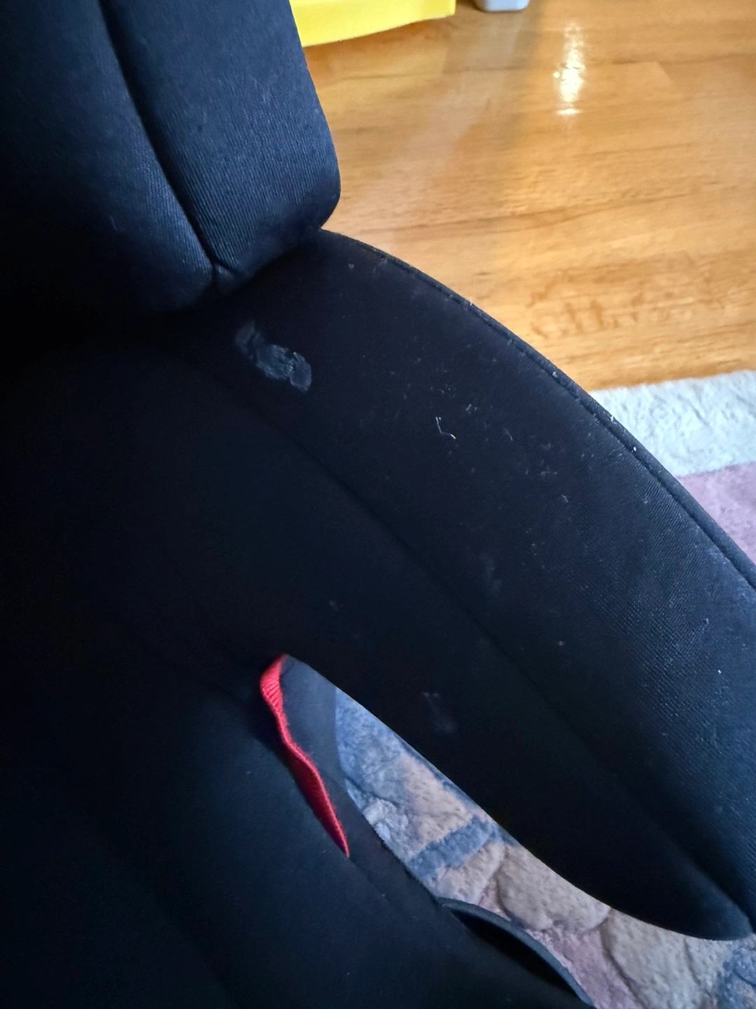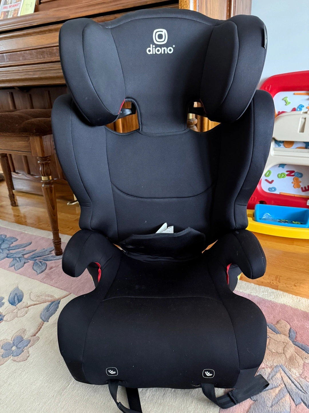 Used as a second car seat. Back comes off so it can used as a booster seat with cup holders. Some dirt on the arm and back which is easily whipped down