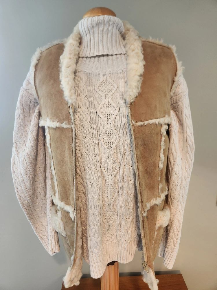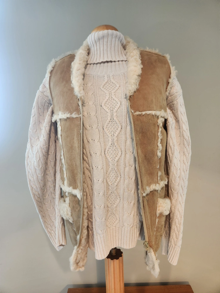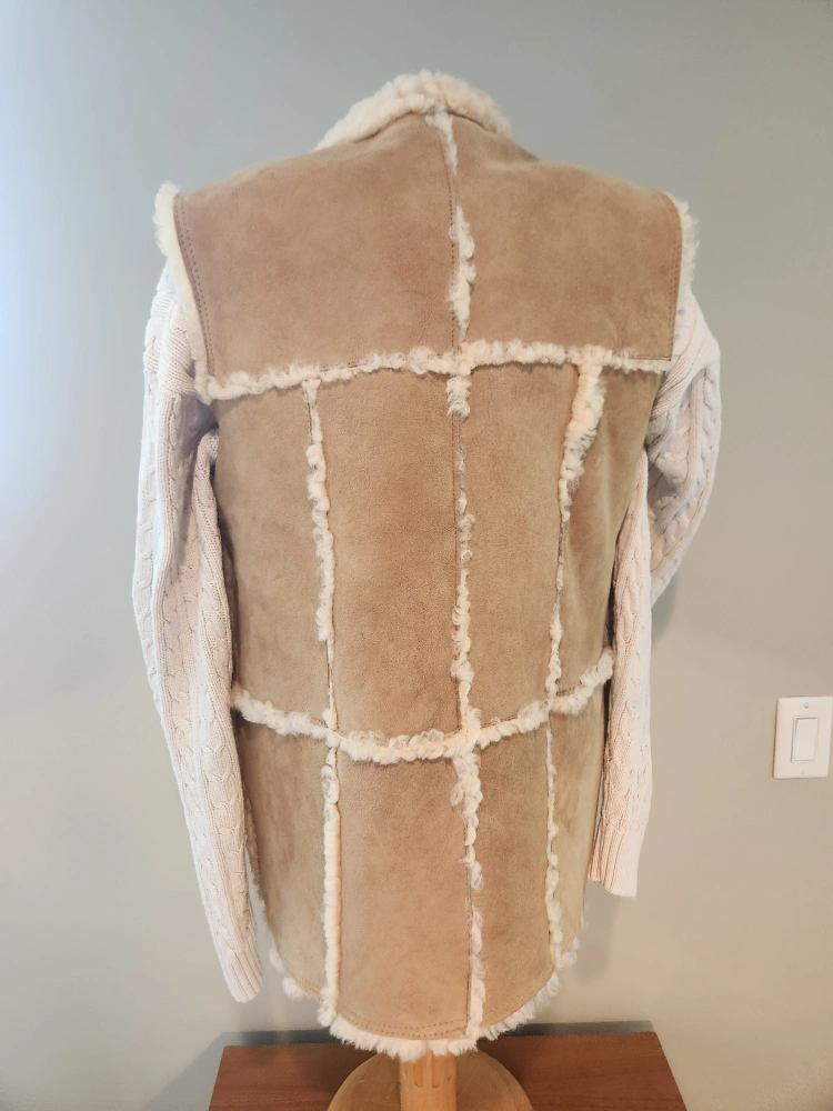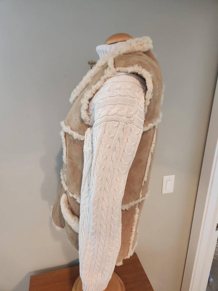 EXCELLENT CONDITION Stylish women's vest. Features a zip-up closure, pockets, and a patchwork design. Made of soft suede and sheepskin. Great for layering. women size small