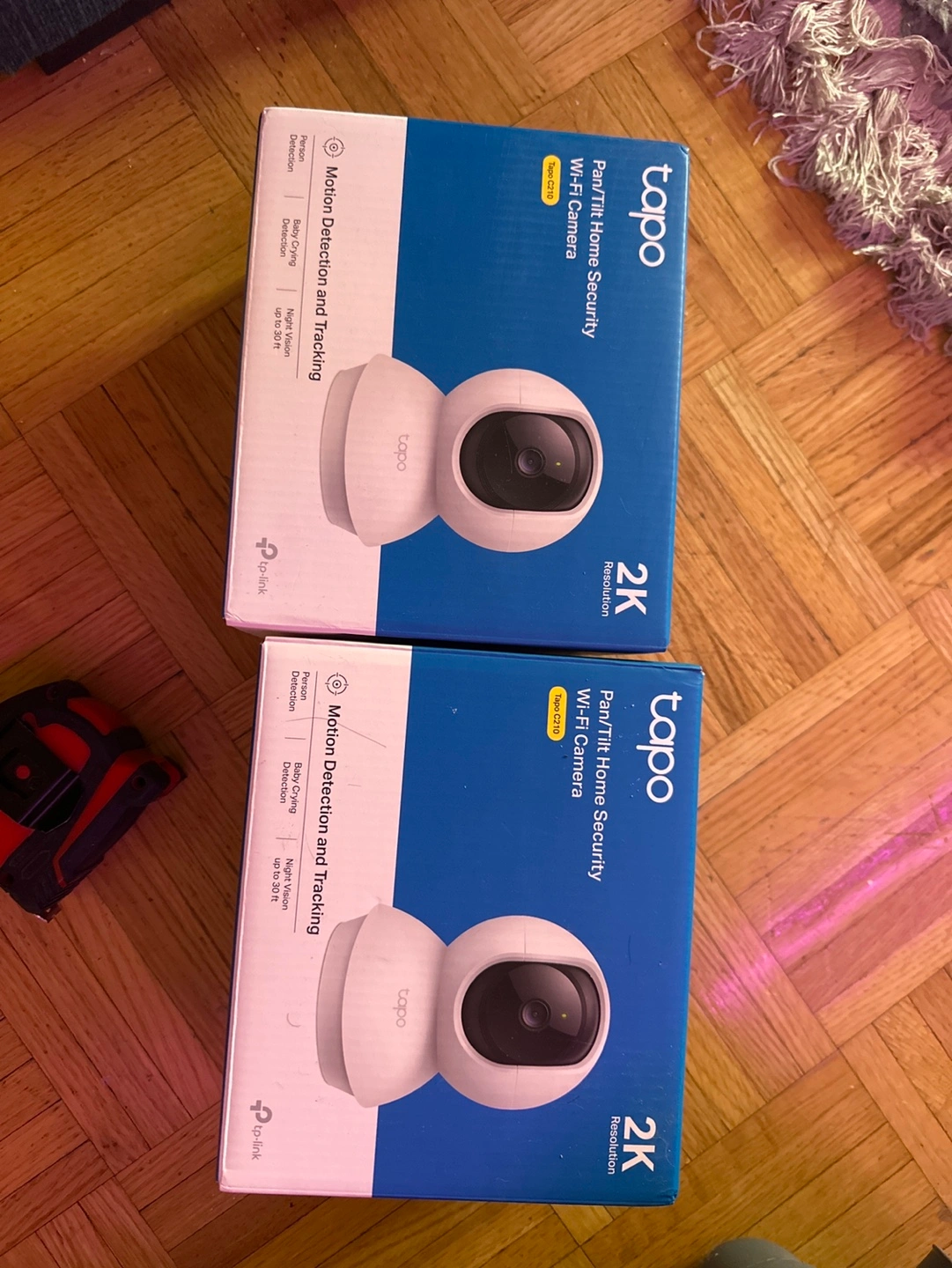 Pair of brand new Tapo 2K resolution pan/tilt WiFi security cameras. Motion detection and tracking. Night vision. Customizable block zones. Cloud storage supported.