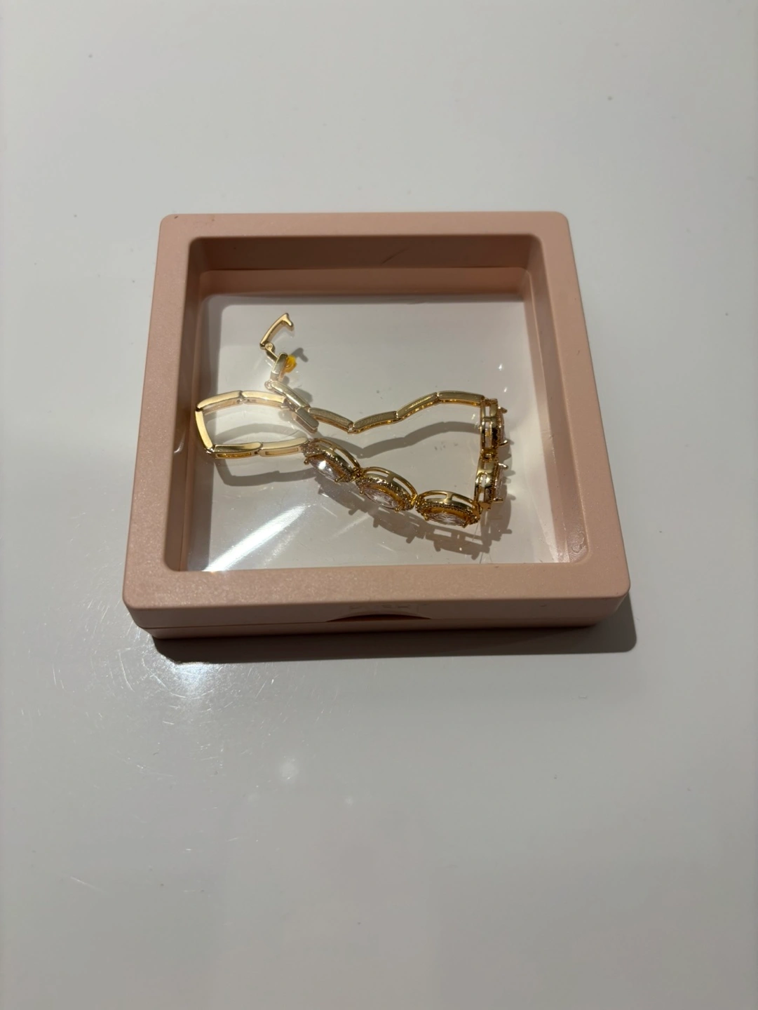 Bracelet and Earrings. Gold tone with oval shaped diamonds. Got these as a gift and I don’t usually wear non-gold jewelry.