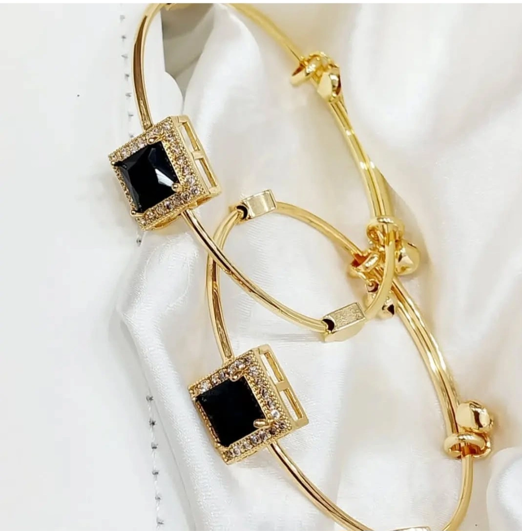 Gold-tone bangle bracelets with black stones