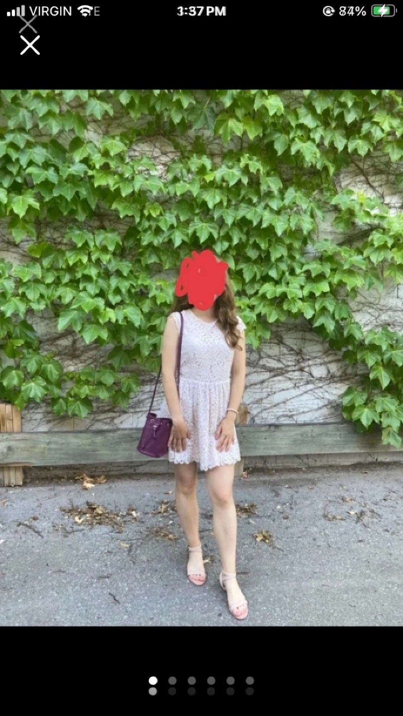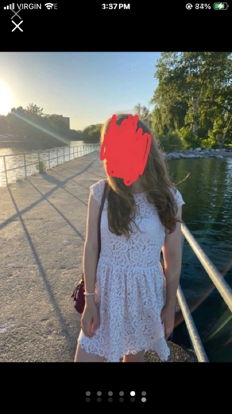 Beautiful light beige/white lace dress with a round neckline from H&M. Barely worn. It has a fitted bodice and a flowing skirt. Perfect for a special occasion or summer day out. The dress is in great condition, worn a couple times, washed & ready to be worn.
