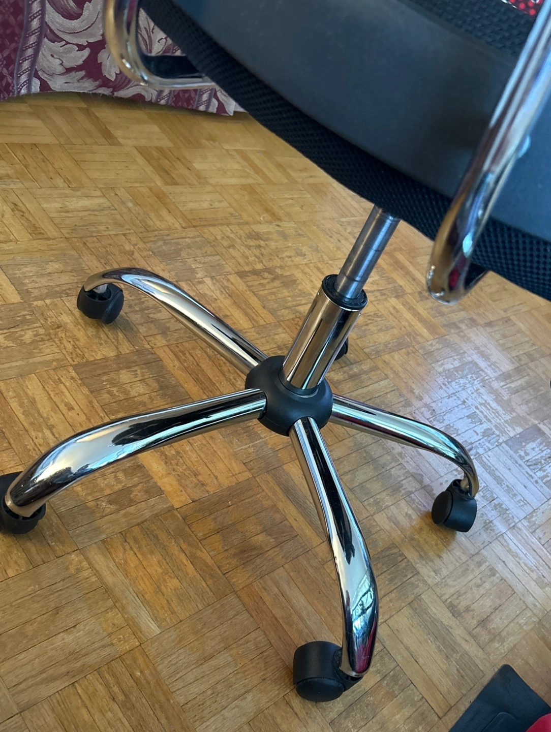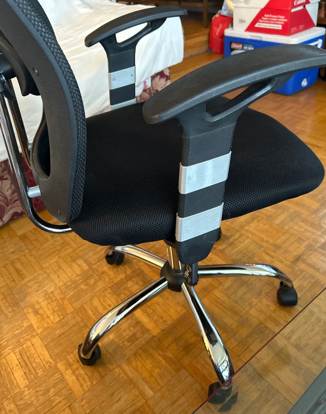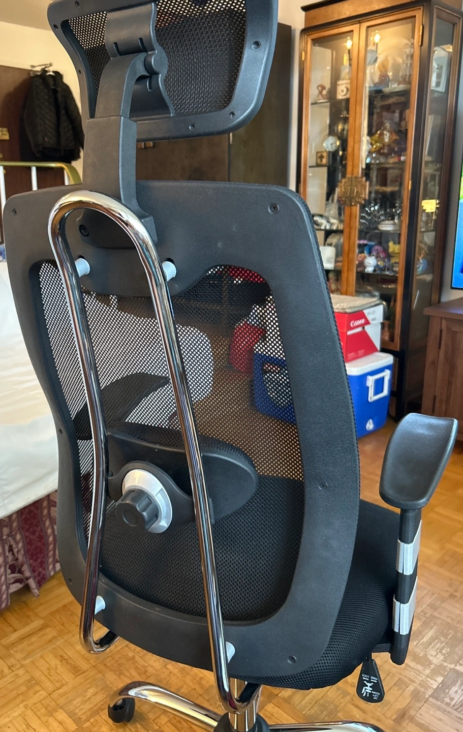 1000+Black mesh office chair. Adjustable height and lumbar support. With arms and mesh headrest included. Chrome base. Excellent quality and design. Some minor wear on the front part of the seat only, as seen in the picture. The rest of the chair is in great condition. Clean and ready to use. Smoke/Pet free home. Cash & Pick up only.