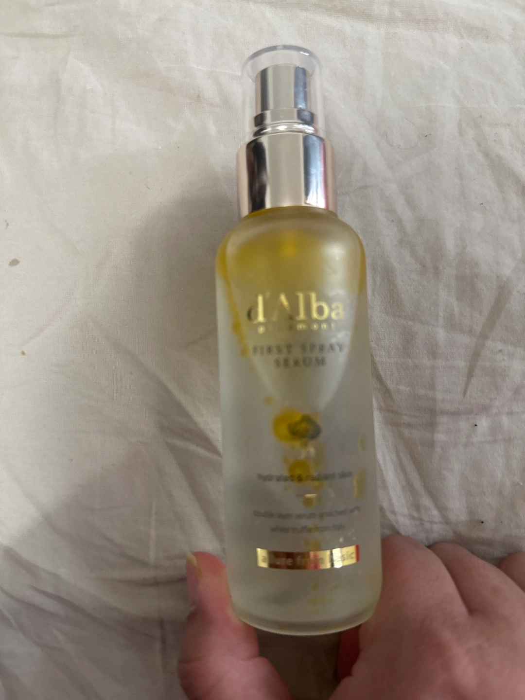 d'Alba Piedmont First Spray Serum. Hydrates and soothes skin. Reduces skin issues caused by dryness. Bottle mostly full.