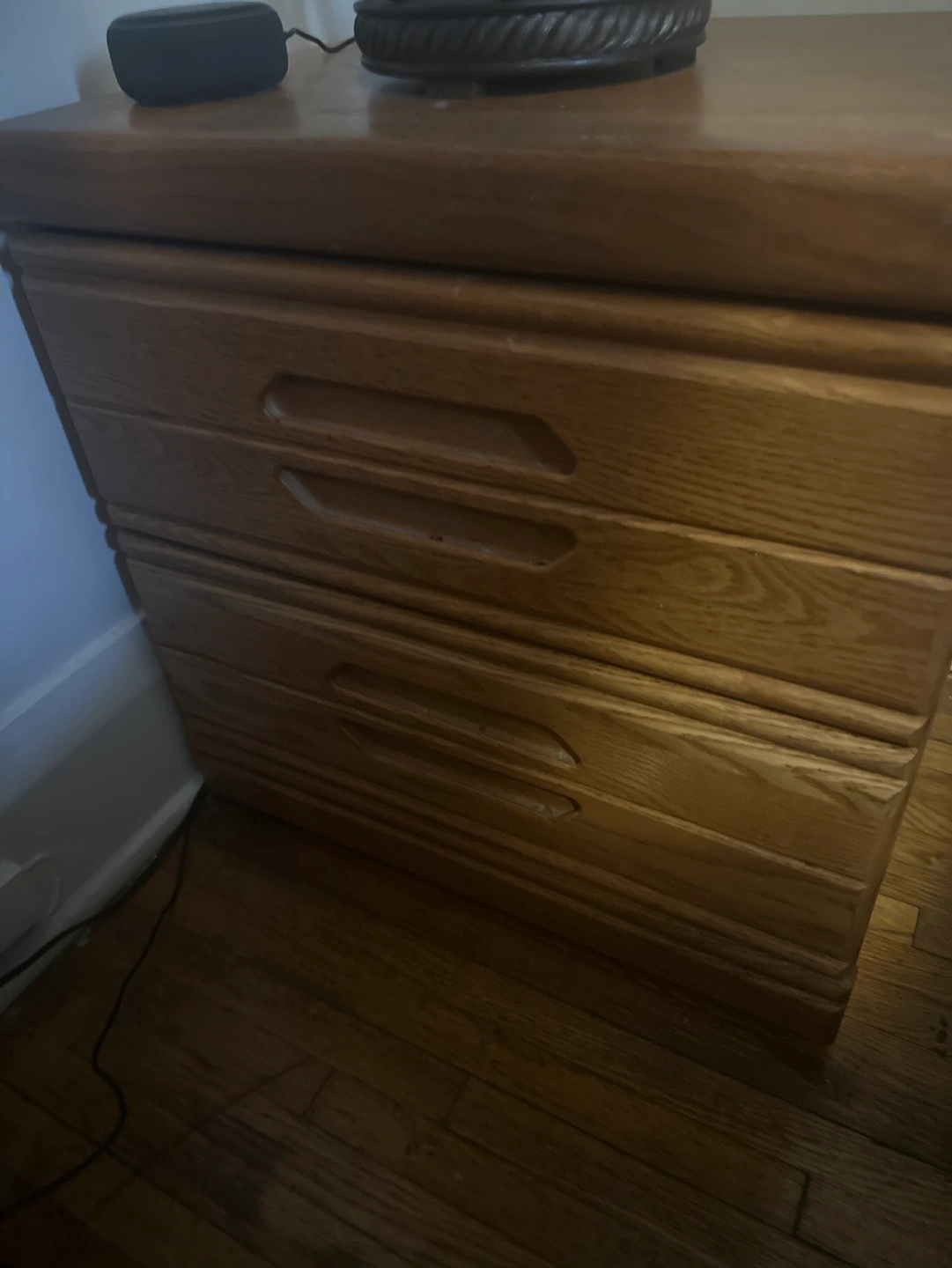 Oak Wood Three-Drawer Nightstand x2