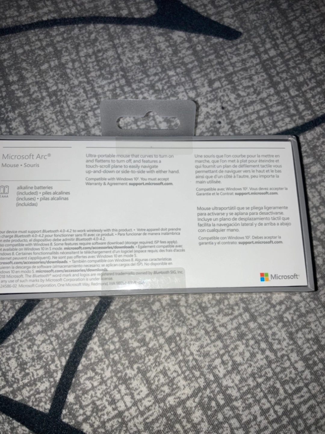 Retail $100+. Sealed. Ultra-portable Bluetooth mouse. Curves to turn on, touch-scroll plane to easily navigate. Compatible with Windows 10+. Includes alkaline batteries.