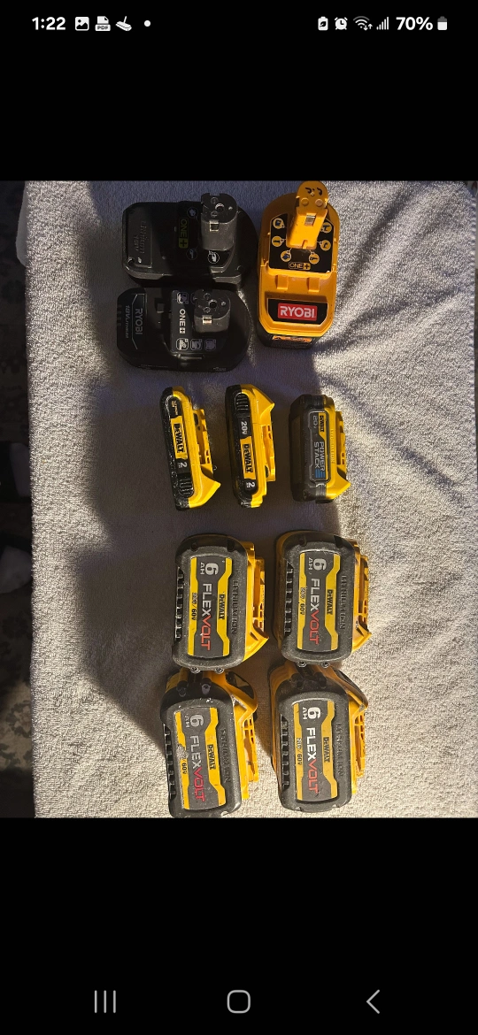 Large lot of Ryobi and Milwaukee power tools and batteries. Includes multiple impact drivers, angle grinder, radio, and several 60V and 20V batteries. Great for contractors or DIY enthusiasts.all different prices business shut down ! make me an offer