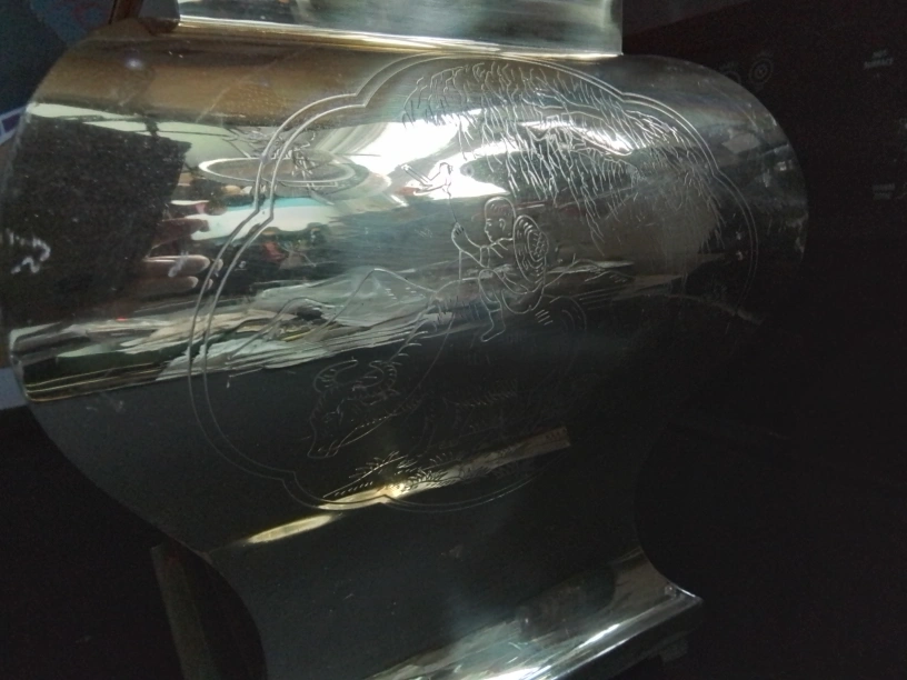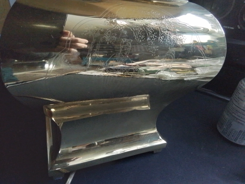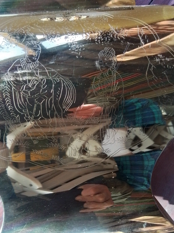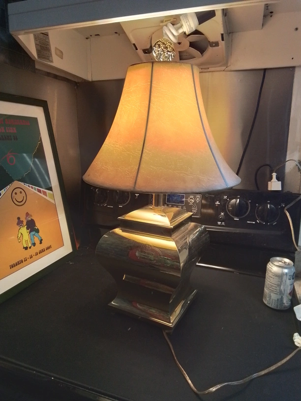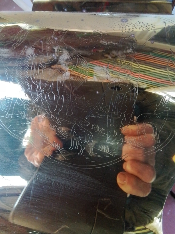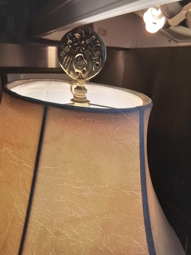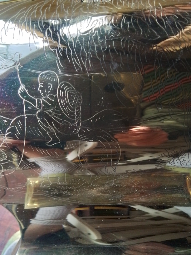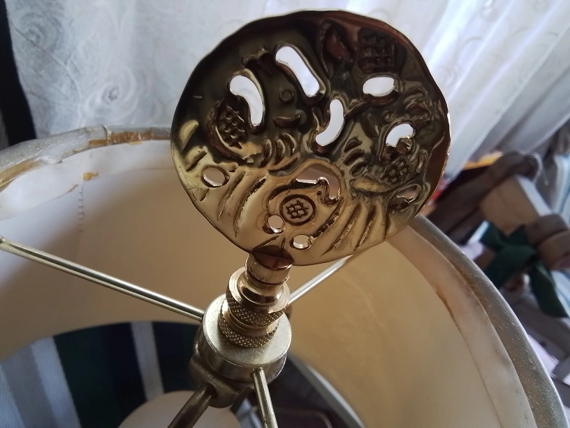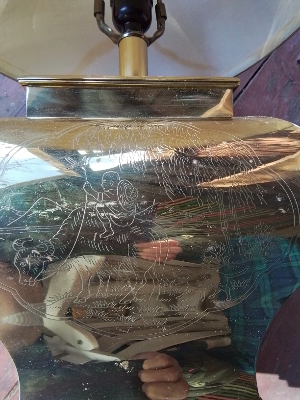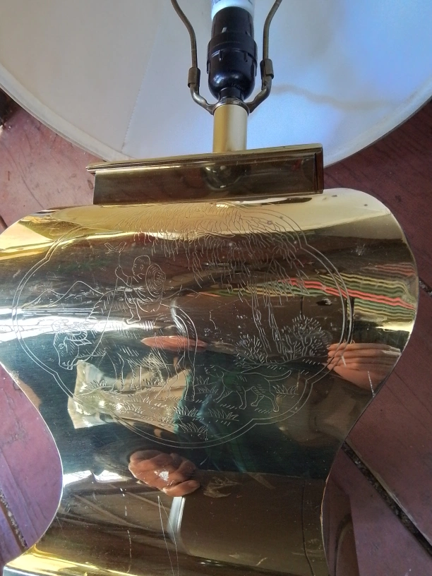 Vintage Brass Table Lamp with Etched Asian Design
