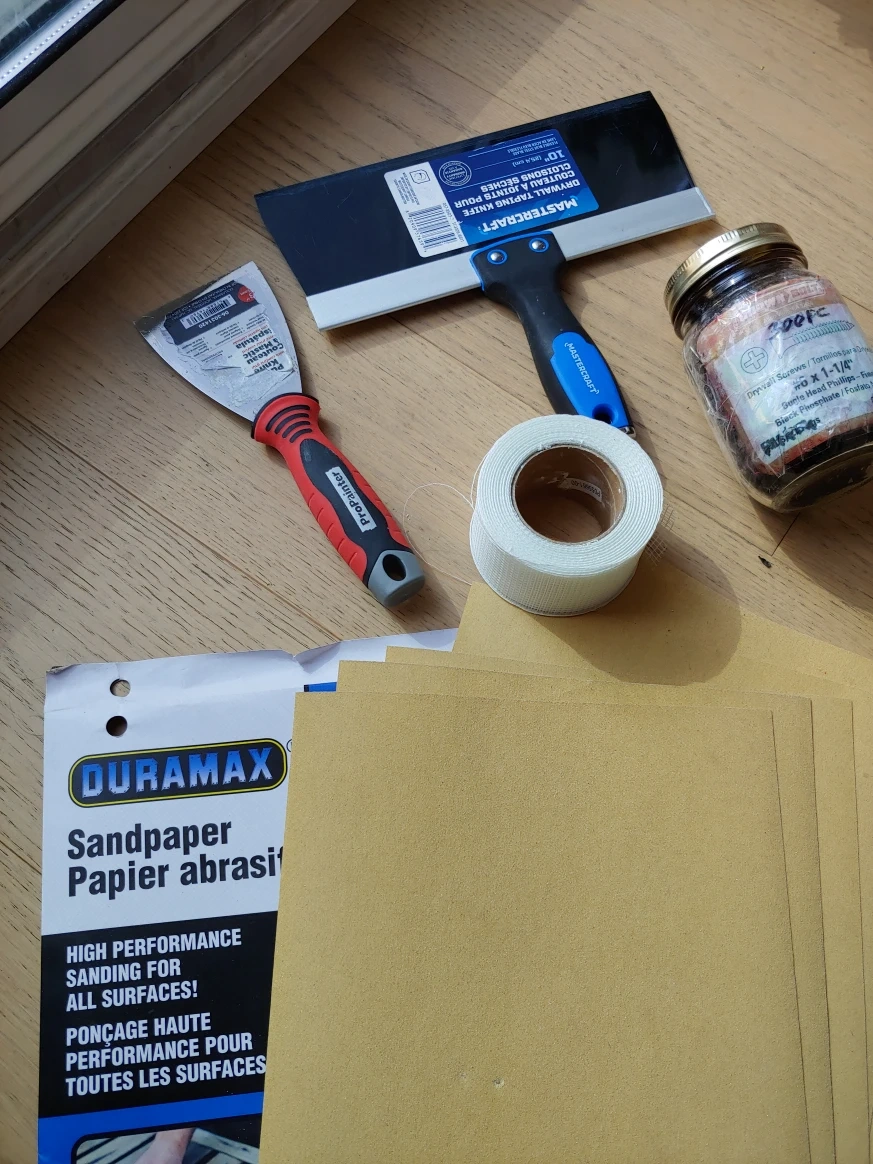 Drywall Repair Kit: Taping Knifes, Mesh, Screws, and Sandpaper