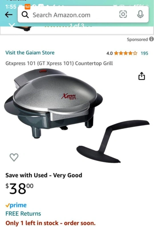 Used GT Xpress 101 countertop grill. Excellent condition. Includes spatula. Makes meals, snacks, and desserts.