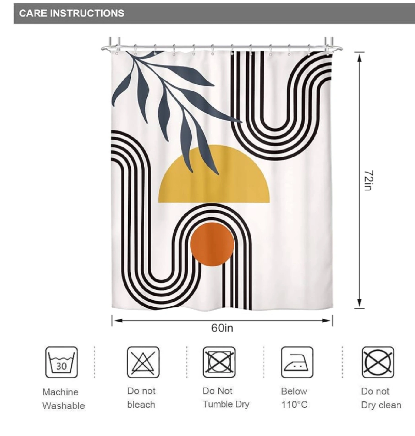 Brand new boho shower curtain with white clips