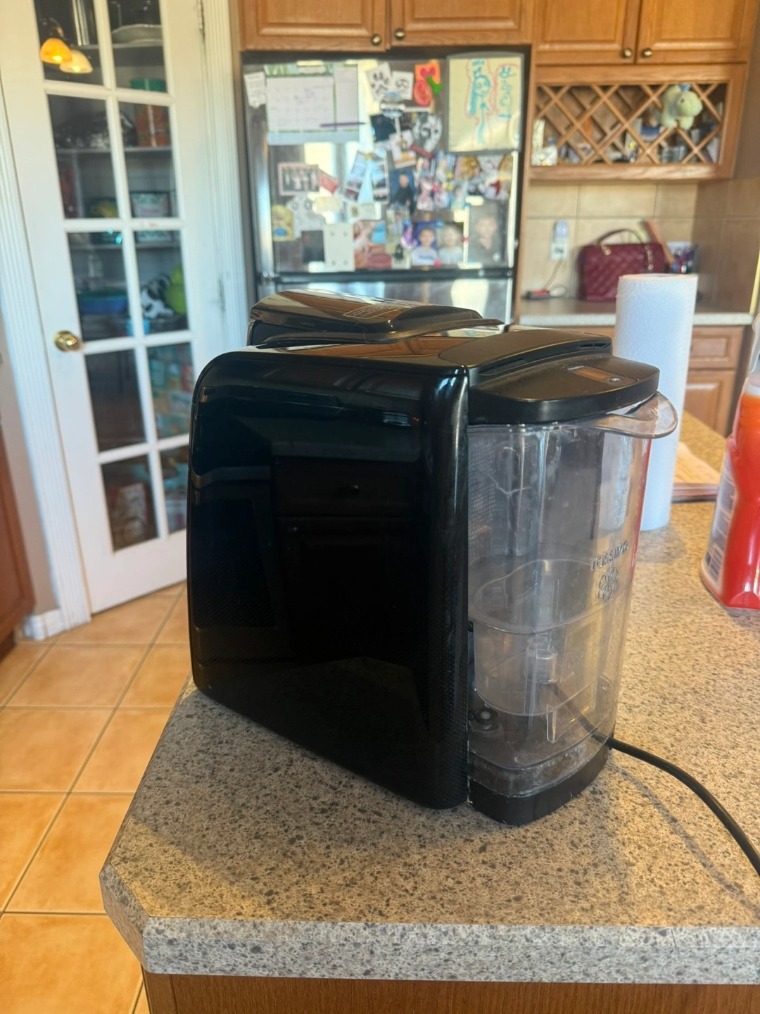 Black single serve coffee machine. Used condition. Includes removable drip tray. Includes disc for hot water. Includes coffee disc holder. Makes hot beverages. Good working condition, we just don’t use it anymore.