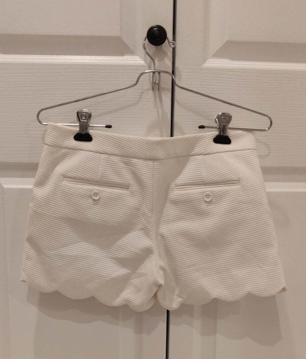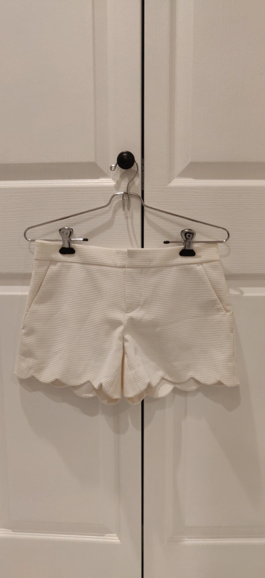 White shorts with a scalloped hem. Button and zipper closure. Excellent condition. perfect for spring! 🍀