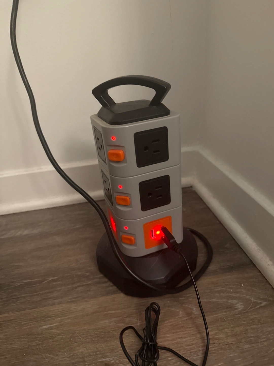 Portable power tower. Multiple outlets and USB ports. Convenient handle for easy transport. Compact design. Perfect for home or office use. Cash and pick up only!
