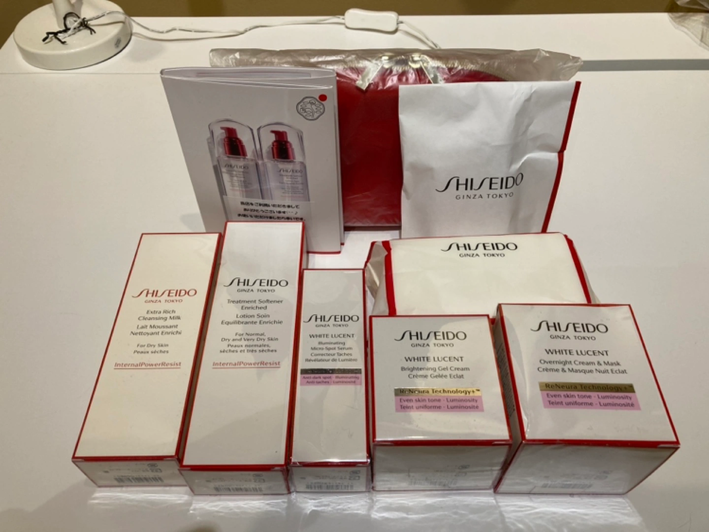 Shiseido Ginza Tokyo premium skincare set. The brand new set includes a cleaning milk, lotion, serum, gel cream, and overnight mask. Bundle freebies includes a pouch, 2 sample/travel set, and small pack of cotton. Worth $509 CDN pre-tax. Was purchased in Japan, unopened. If you are interested in parts of the bundle we can chat.