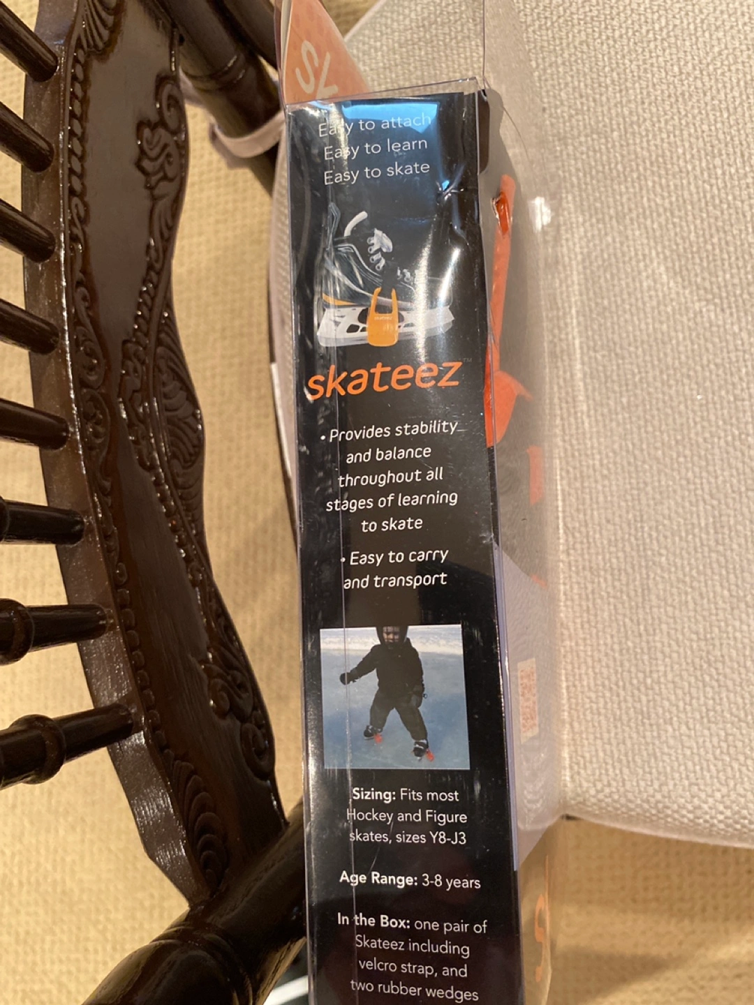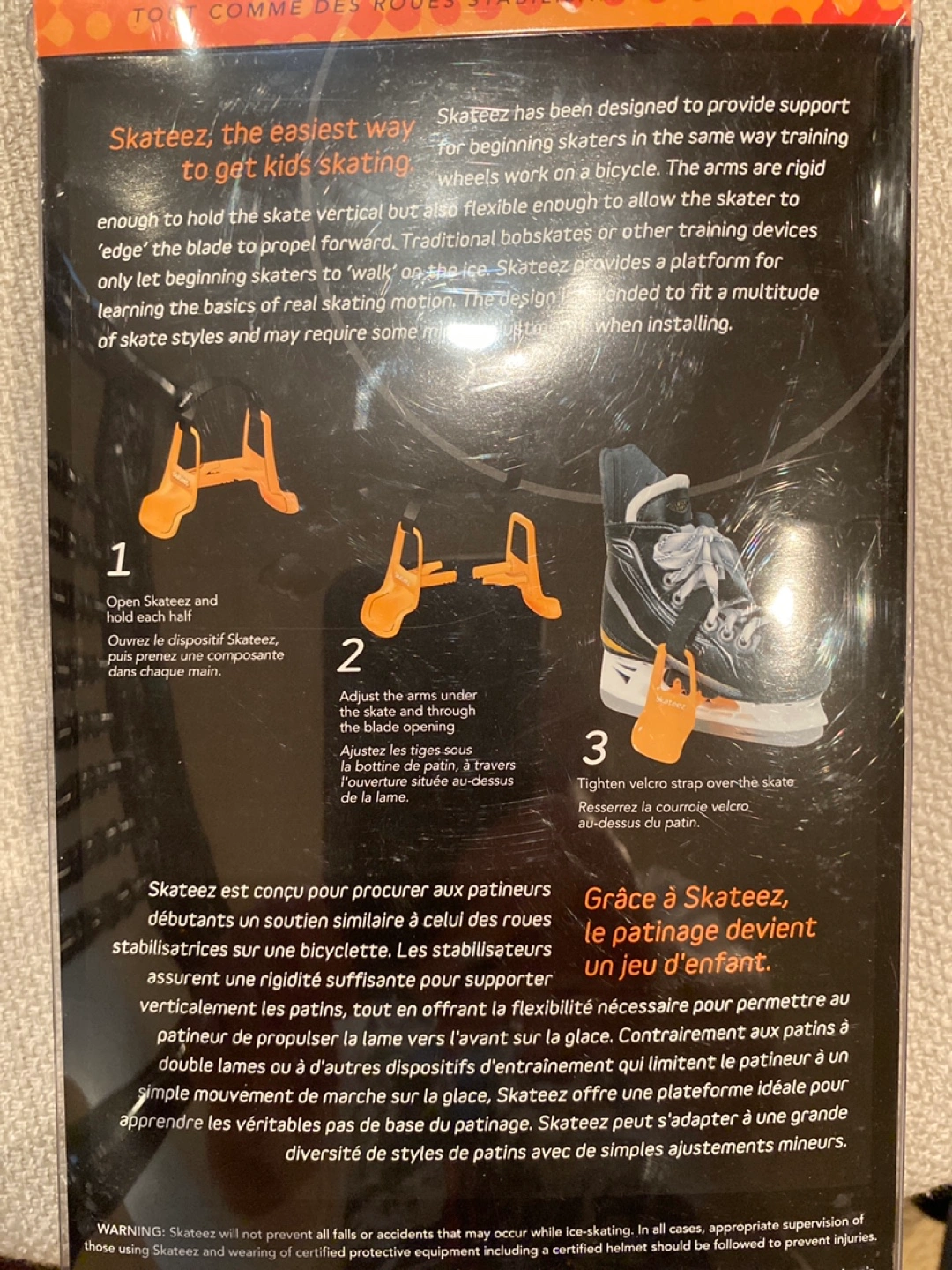 New in package. Provides stability and balance while learning to skate. Easy to attach, learn, and transport. Includes one pair of SkateeZ, velcro strap, and wedges. Ages 3-8 years. Or best offer