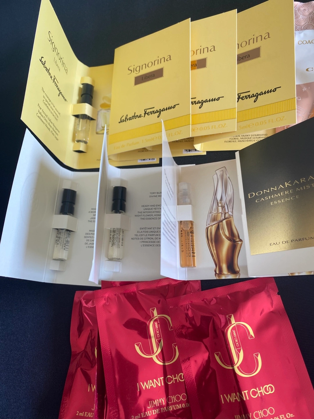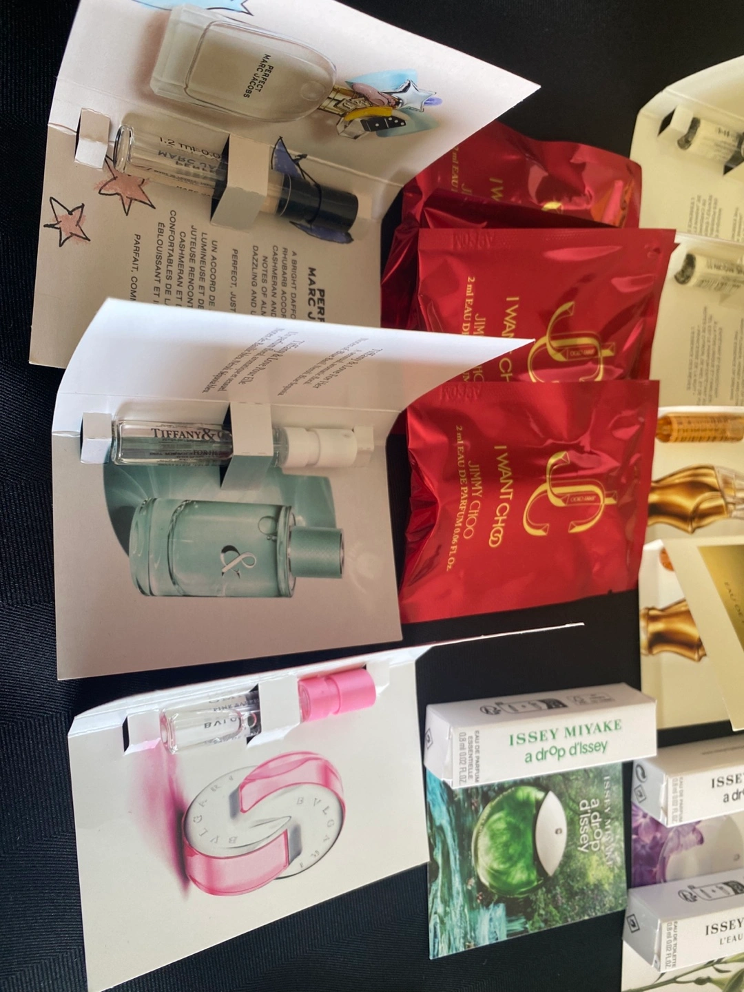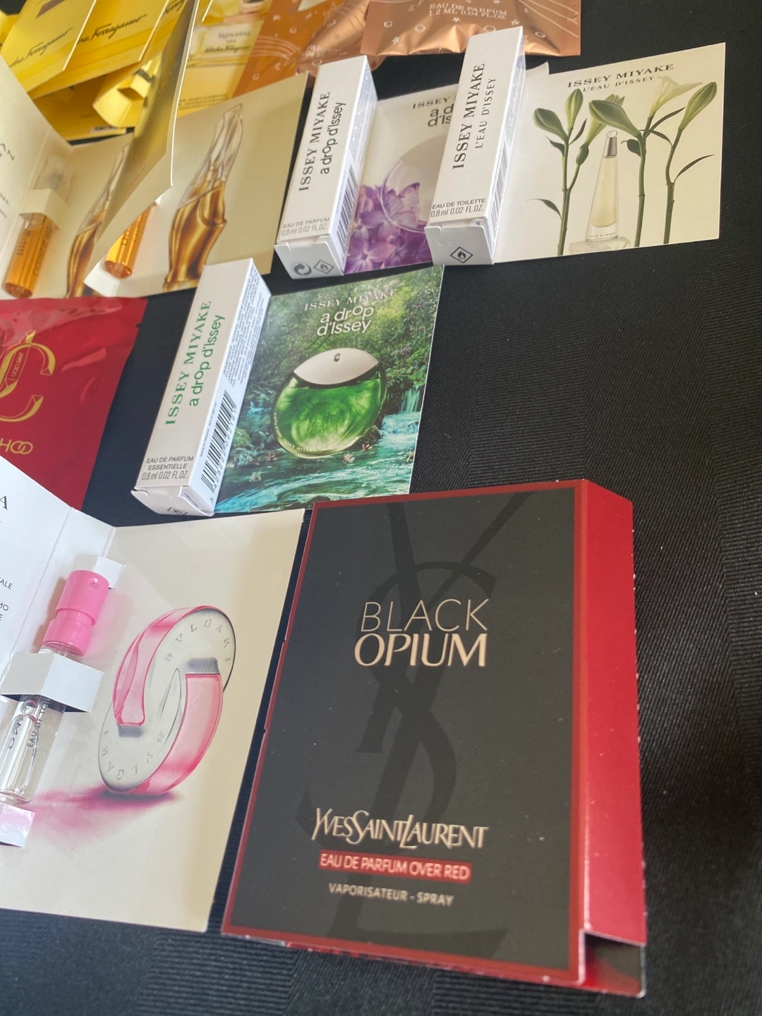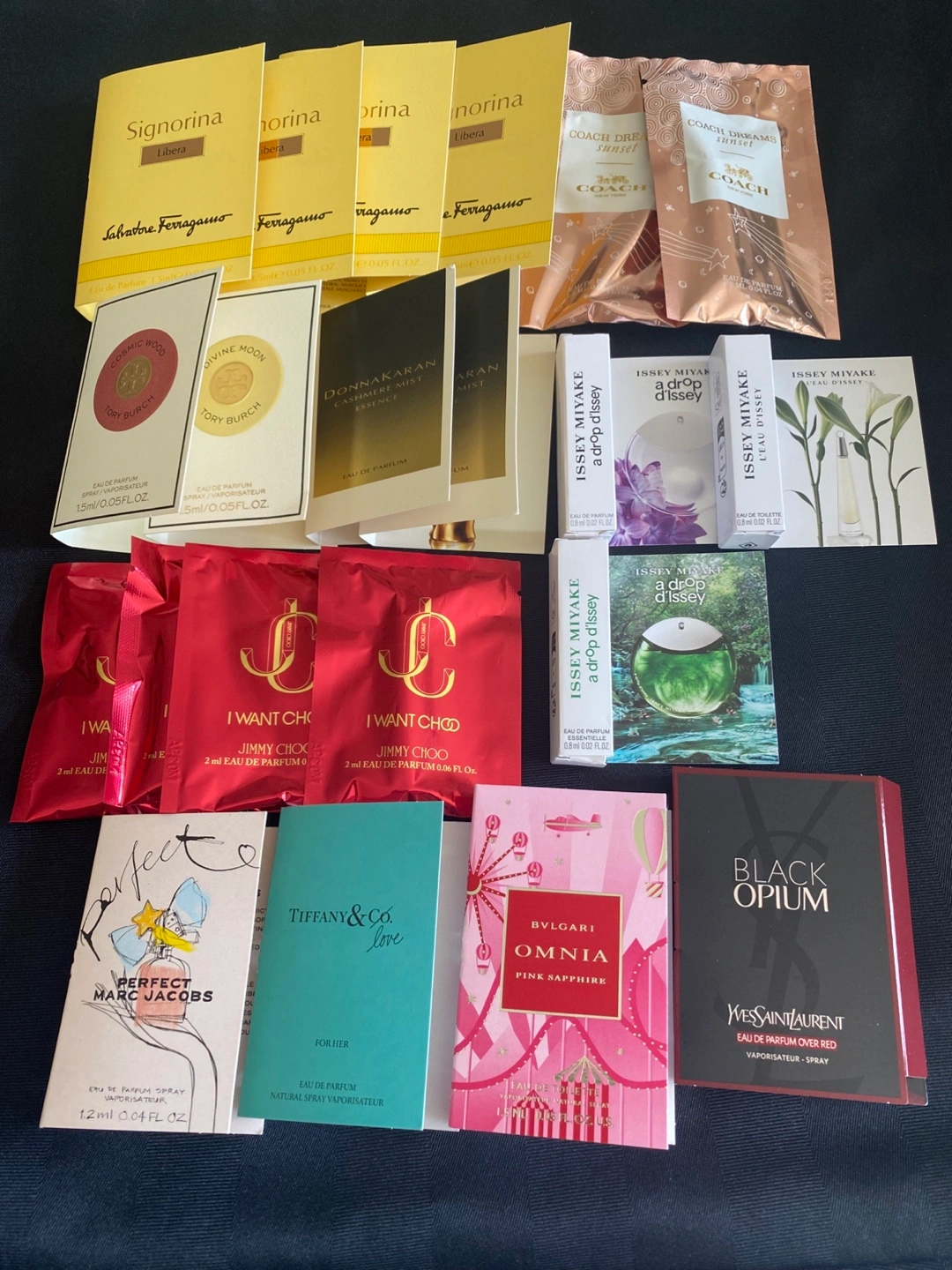 Large collection of perfume samples. Includes various brands and scents. Great for trying new perfumes before committing to a full bottle. Samples in various sizes and packaging.$3 each.