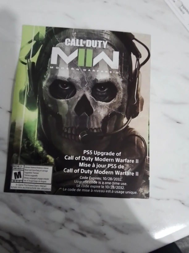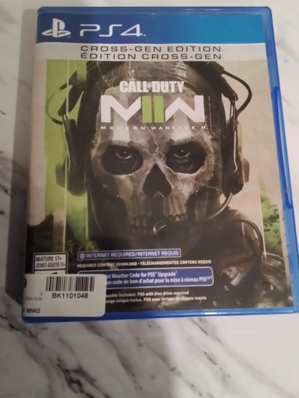 PS5 upgrade code for Call of Duty Modern Warfare II. Code expires 10/28/2023. Includes PS4 Cross-Gen Edition game. Pre-owned.