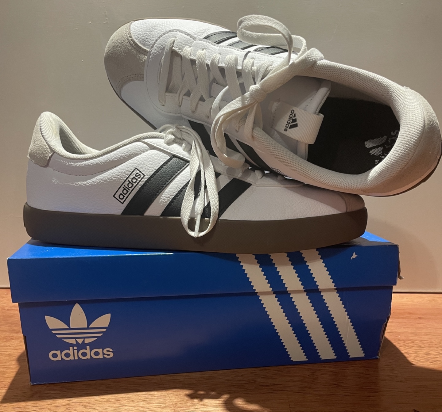 Men's Adidas VL Court 3.0 sneakers. Size US 11, White leather upper,black stripes, gum sole. Comes in original box. Worn for a minute but wrong size. Retail for $99.99