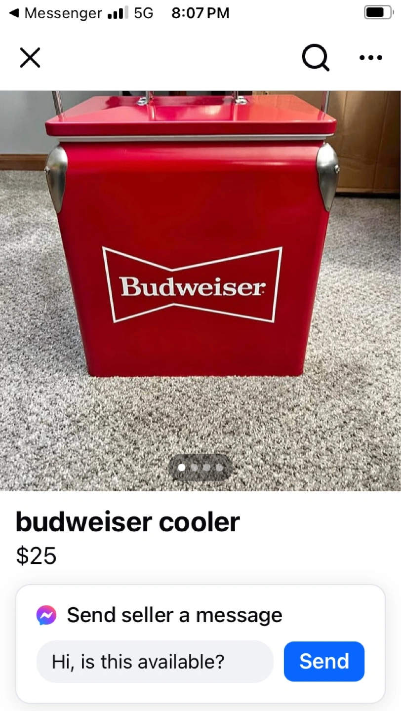 Red metal beverage cooler. Vintage style. Budweiser logo. New in the box.. sold out everywhere! Originally $149 I have 1 left for $75