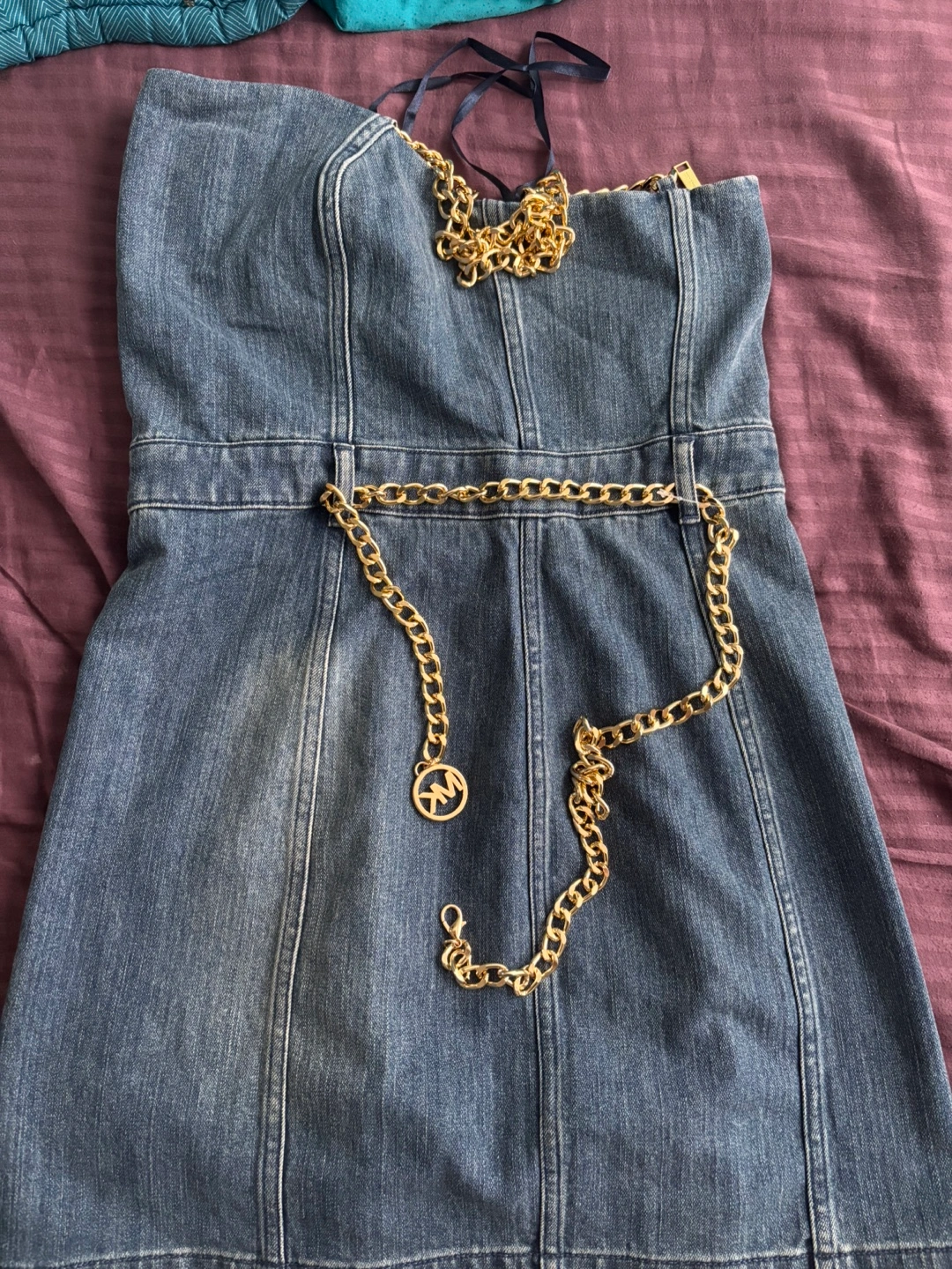 Michael Kors Denim Dress with Gold Chain