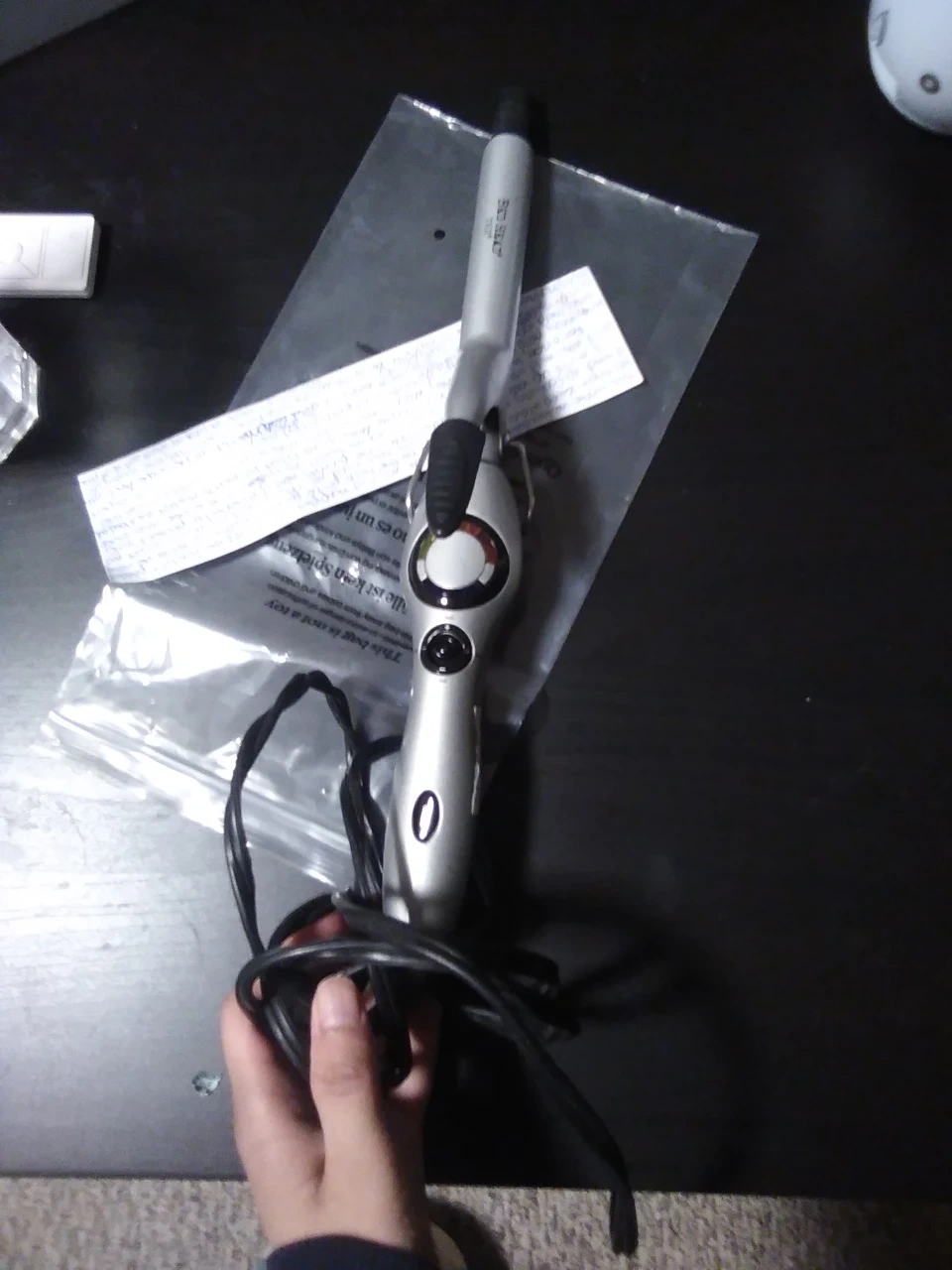 Used bedhead curling iron. Silver and black. Features a temperature adjustment dial. Includes power cord. over ten years old but still works very well. original retail 22 dollars.