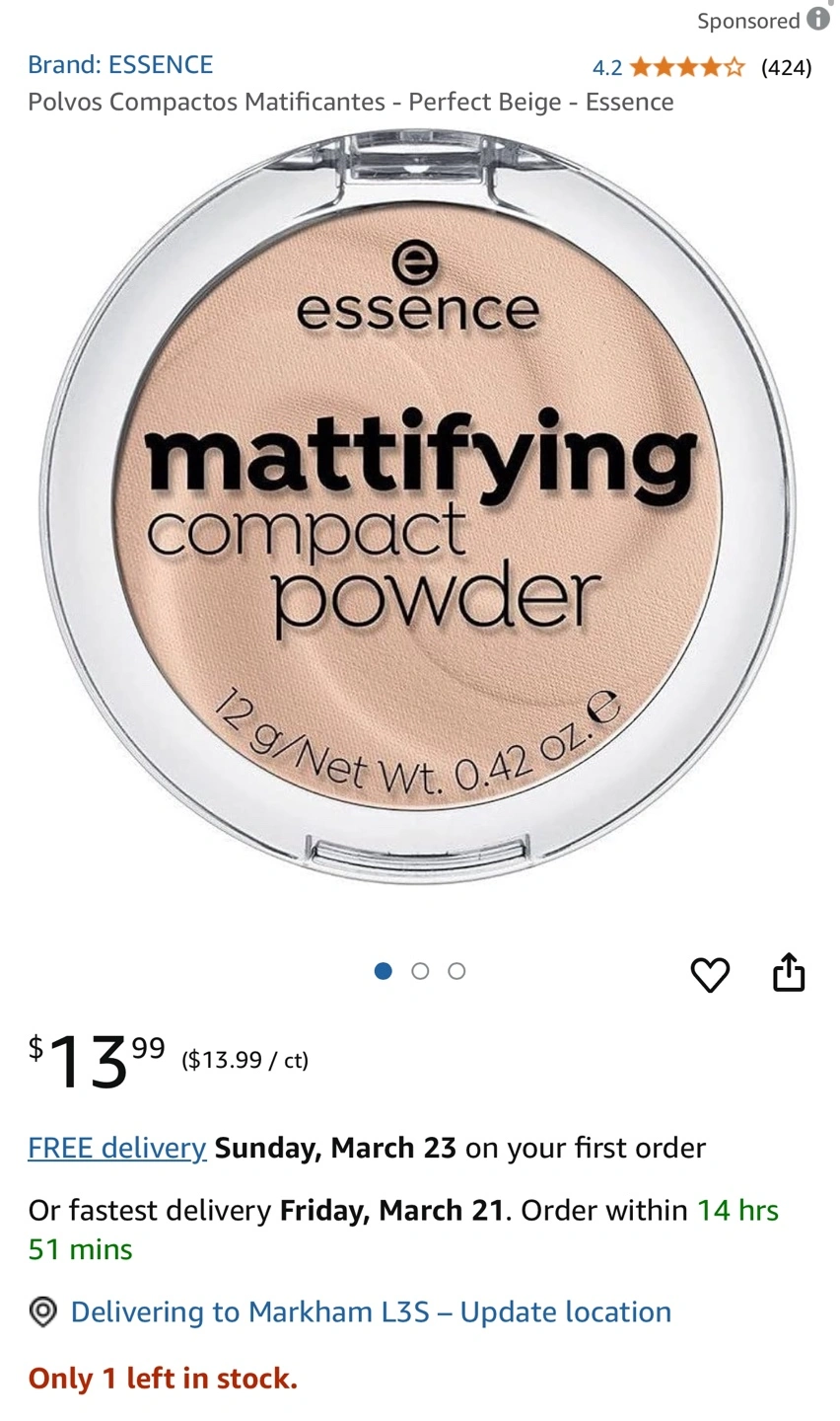 Brand new never used compact powder. Bought in an Asian country so it has a sticker on the back. Amazon sells for $14. Shade is 11 Pastel Beige