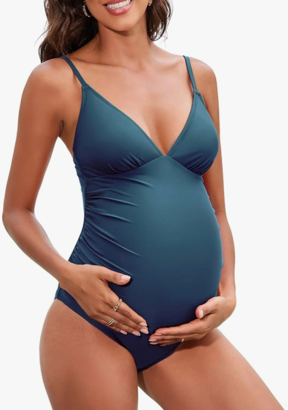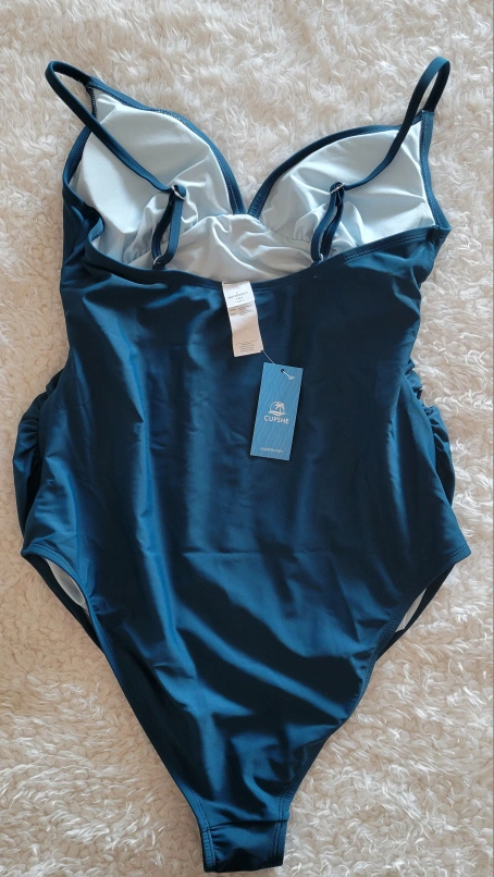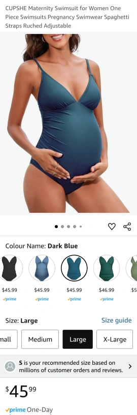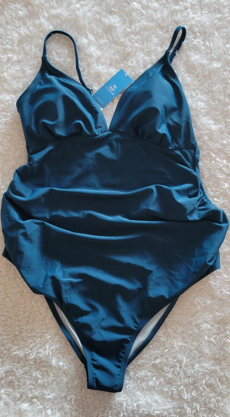 Brand new with tag. Dark blue maternity swimsuit. One-piece design. Spaghetti straps. Ruched adjustable. Size Large.