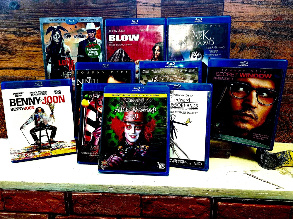 Collection of 10 Blu-ray movies featuring Johnny Depp. Titles include Secret Window, [Ɓlu-ray]