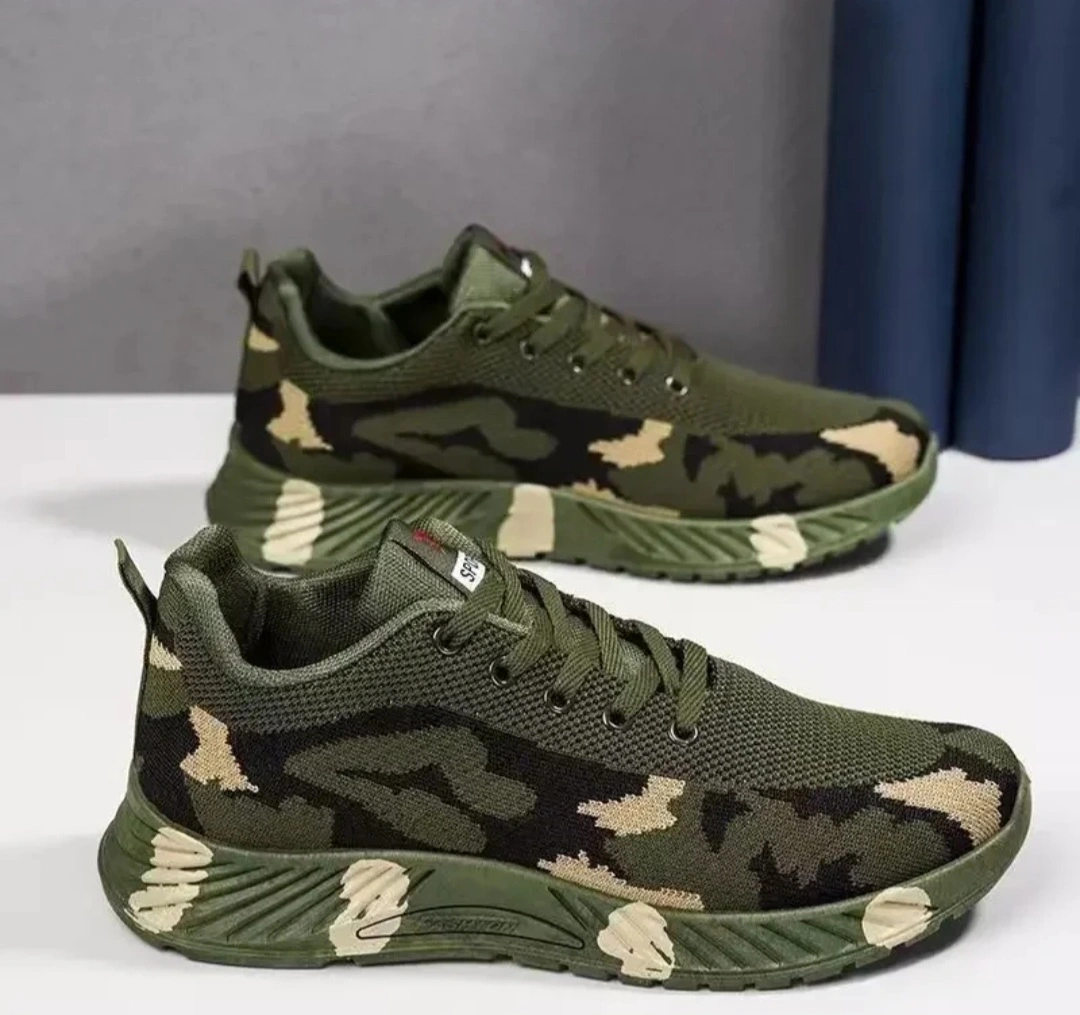 Pair of camouflage print sneakers. Lightweight and breathable. Great for casual wear. Size 10 men's.