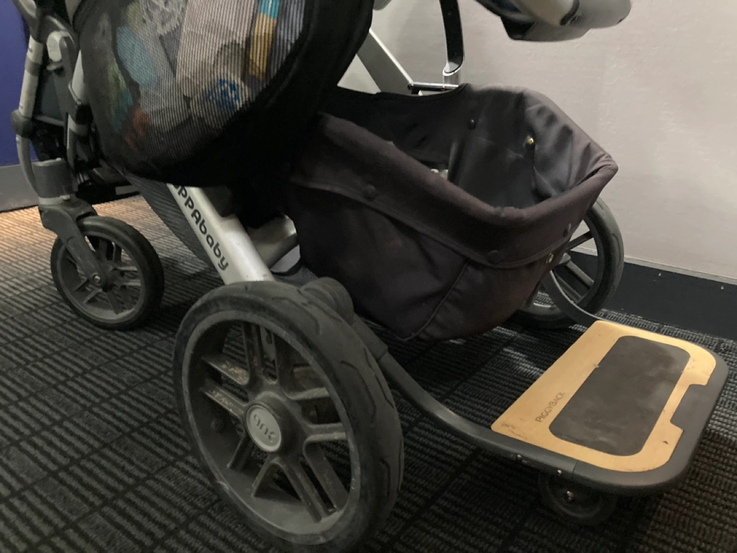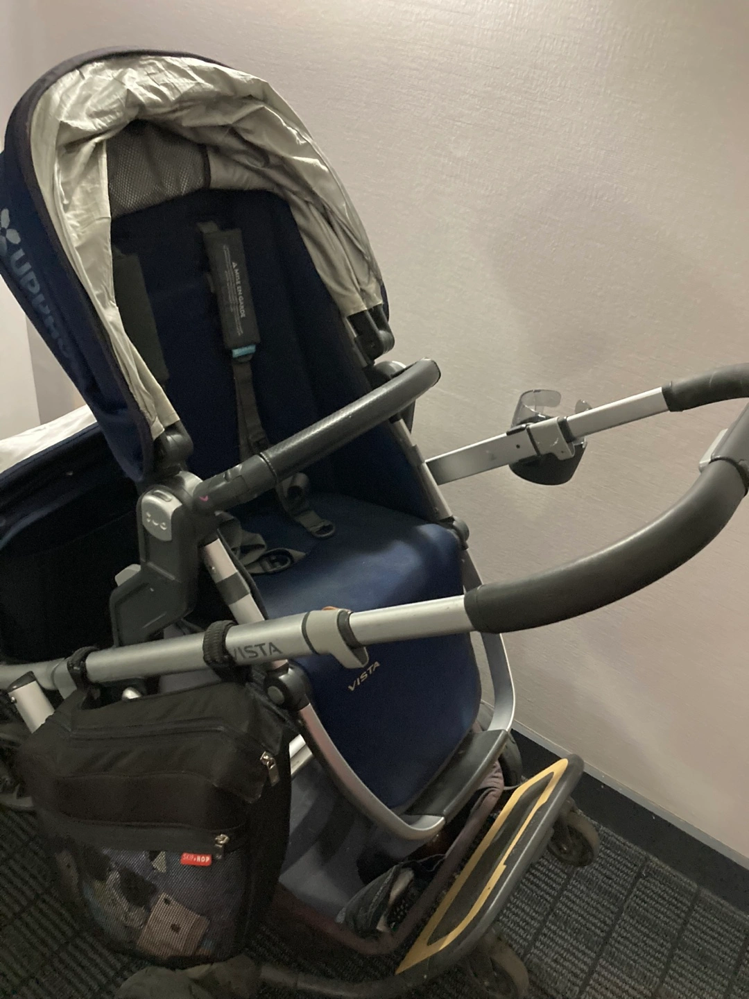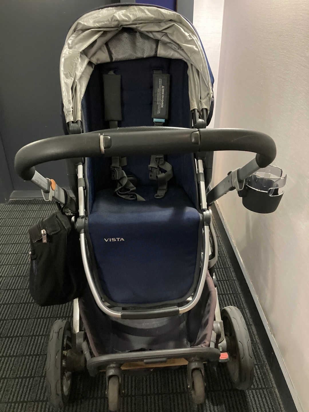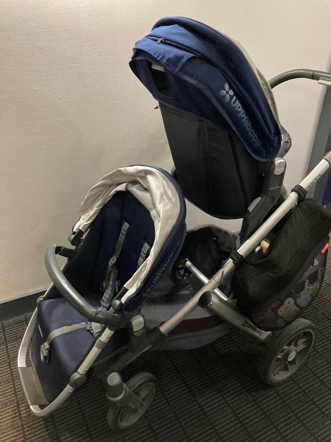 Bassinet in navy also included (like new condition) and rain cover for uppa bassinet