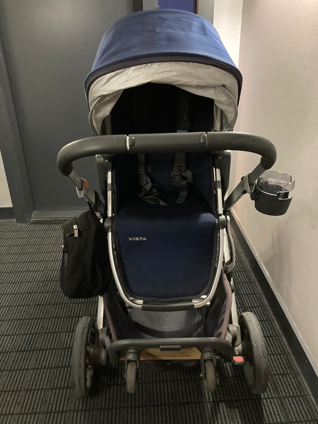 UPPAbaby Vista double stroller. Navy blue. Includes Piggyback ride-on board. Large under carriage. Great condition. Suitable for two children. Only available for pick up.