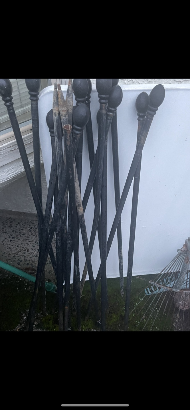 $1 each for Multiple black metal fence panels(14) and posts(16). Suitable for various applications.