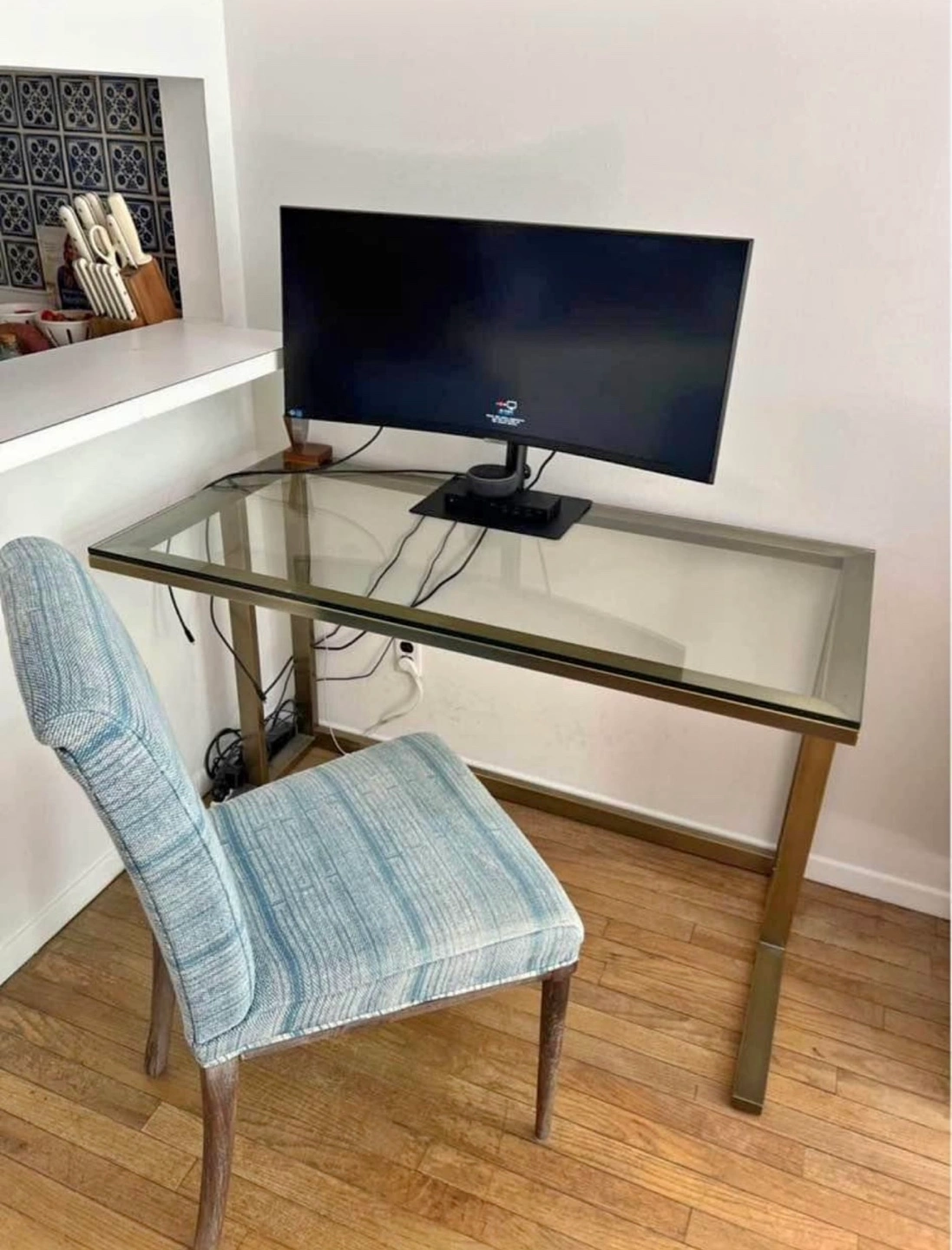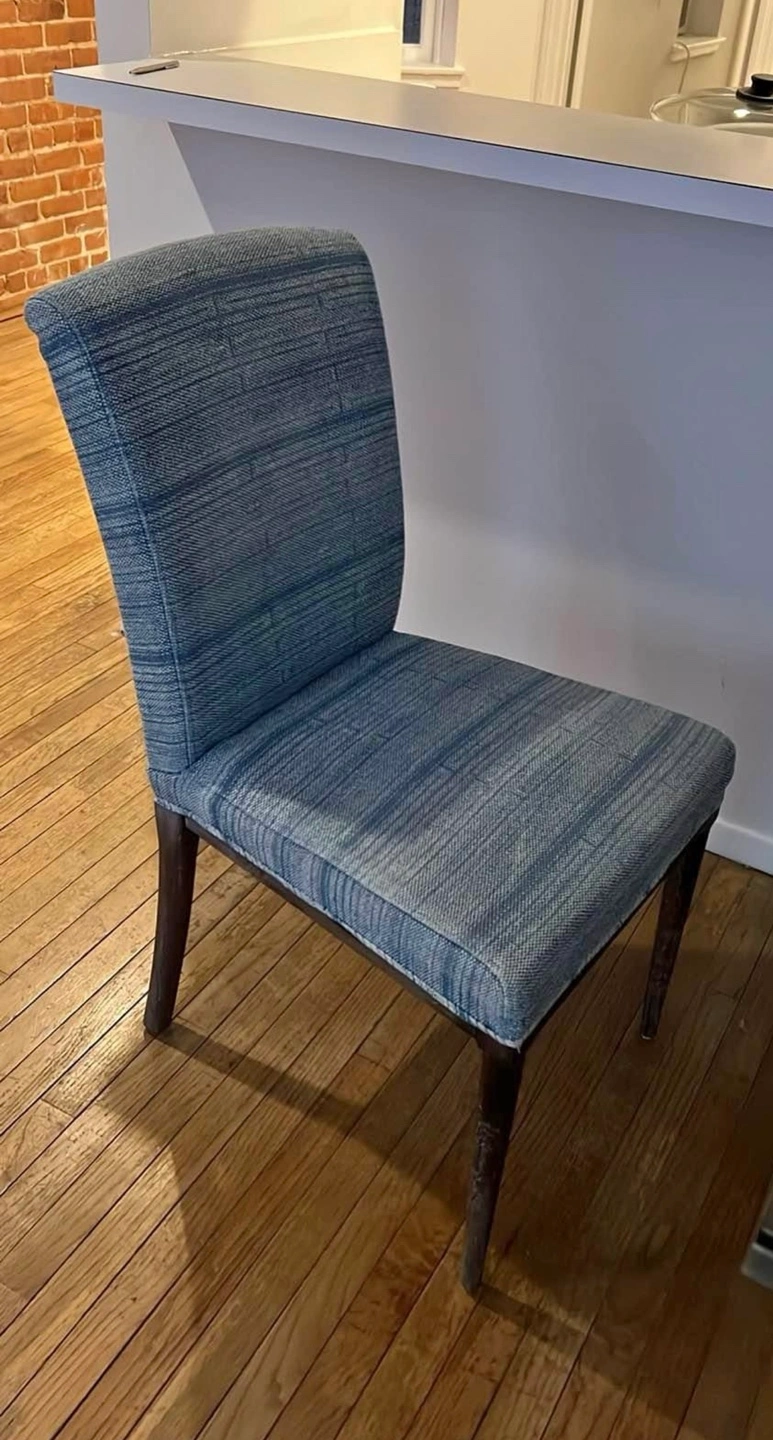 Moving sale. Like new beautiful blue Anthropologie Chair. Match with any Desk or table. Selling desk separately or together. Pm if interested in. UES.